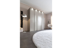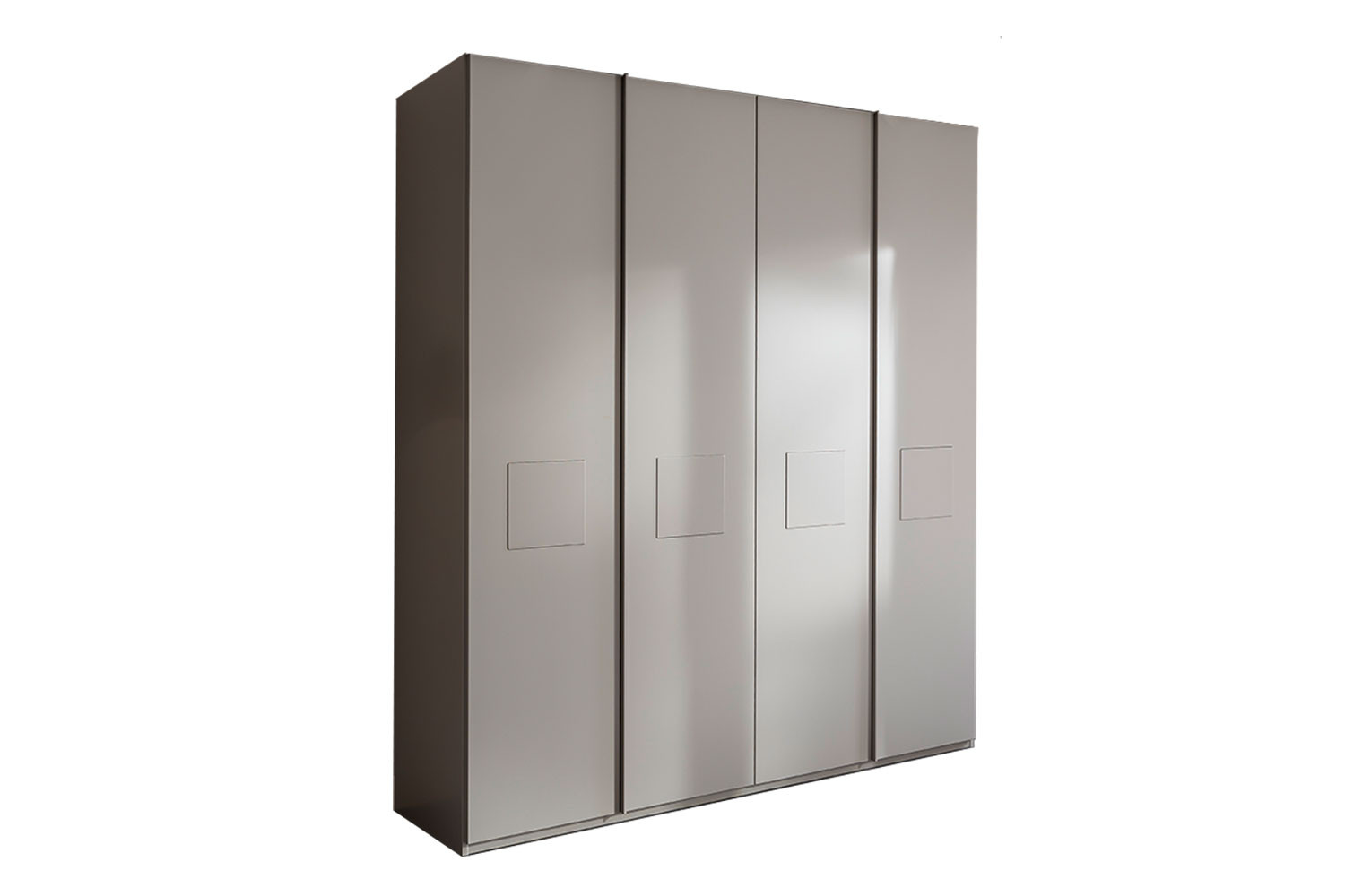 - Kleiderschrank: Türen in Frontausführung, 4 Türen mittig mit Quadrateinsätzen in Lack seidengrau