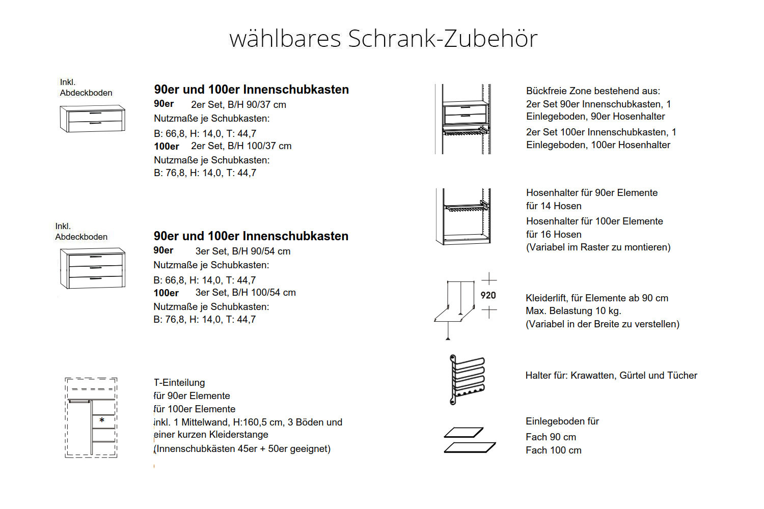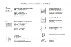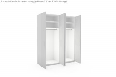 - Kleiderschrank: Inneneinrichtung je Element 2 Einlegeböden und 1 Kleiderstange