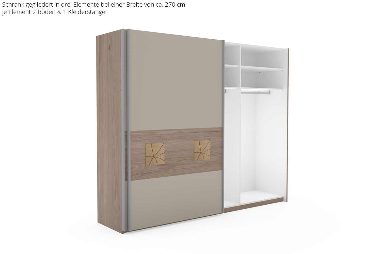 - Innenausstattung: 2 Böden, 1 Kleiderstange je Element