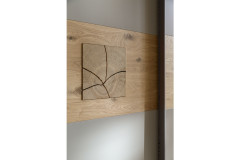 Furniere sind natürlich gewachsene Werkstoffe, die bei gleicher Holzart unterschiedliche naturbedingte Merkmale, wie Farbe, Struktur, Maserung, Wuchseigenschaften, aufweisen. Furniere sind dünne Holzblätter, die durch Schälen oder Messern von einem Stamm gewonnen werden. Diese abweichenden Natur- und Wachstumsmerkmale verleihen jedem Möbelstück ein einzigartiges Erscheinungsbild. Wie eine Haut gibt es dem Objekt sein unverwechselbares Gesicht und unterstreicht die Echtheit des Naturprodukts und verleiht ihm so seinen einzigartigen Charme. Hinweis: Schranktüren mit Spiegelauflage sind gegebenenfalls mit einer Holznachbildung versehen.