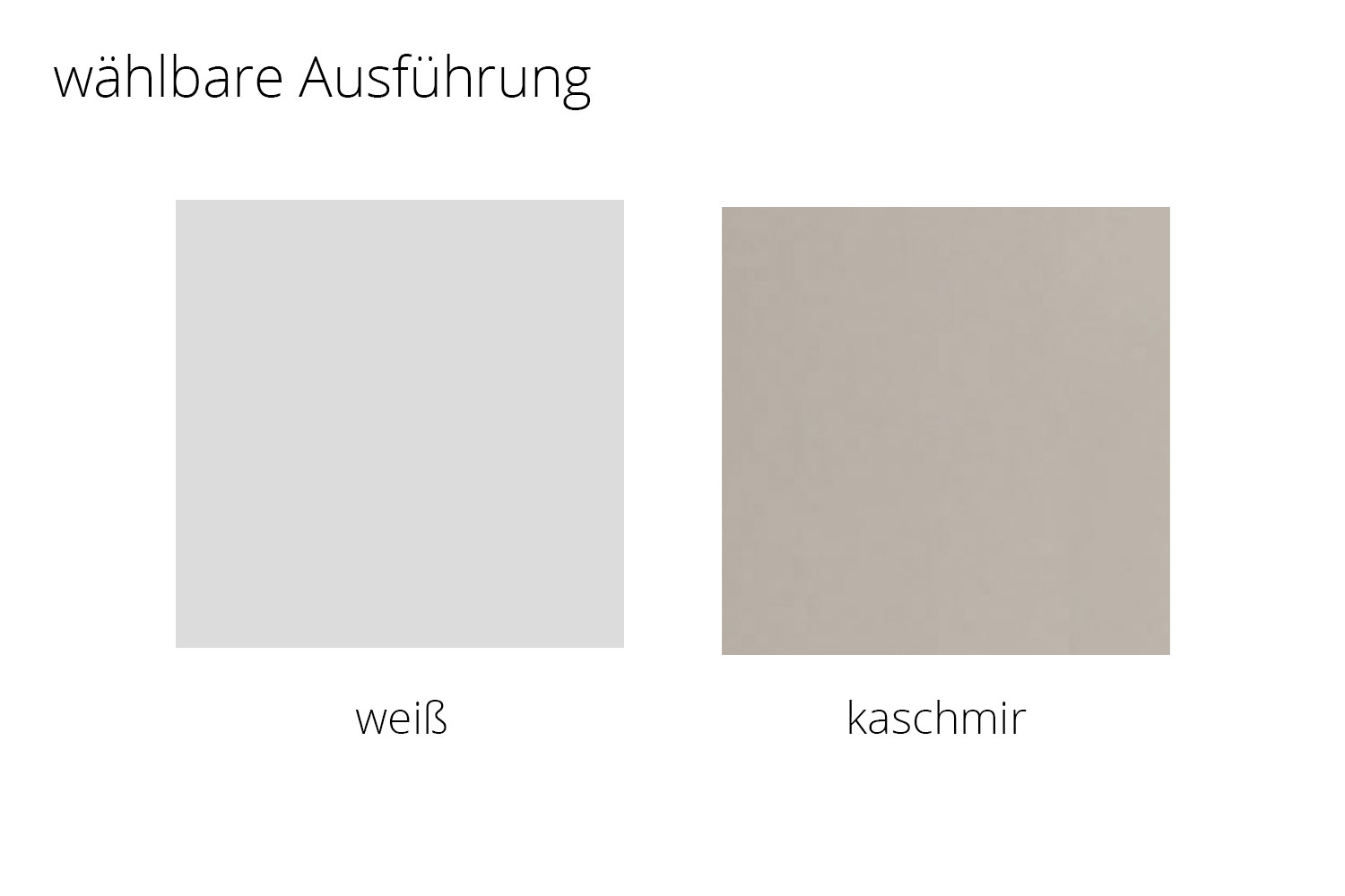 Der Drehtüren-Kleiderschrank mit dem Namen Camoleo von SchlafKONTOR hat einen modernen Look und eine ausgeklügelte "All in"-Komplett-Innenausstattung, die nahezu allen Ansprüchen an ein übersichtliches Ordnungssystem gerecht wird. Der Korpus in mattem Kaschmir vereint sich mit einer gleichfarbigen Hochglanzfront und schenkt dem Kleiderschrank eine gemütliche und wohnliche Optik. Die schmalen Griffleisten setzen einen modernen Kontrast und ermöglichen eine einfache Bedienung der leise schließenden Türen. Der 6-türige Ordnungshüter mit einer Breite von etwa 300 cm stellt Ihnen mit seiner Innenausstattung zahlreiche unterschiedliche Aufbewahrungsmöglichkeiten für zusammengelegte und auf Bügeln hängende Textilien sowie kleinteilige Wäschestücke und Accessoires zur Verfügung. Camoleo ist in drei Elemente gegliedert, die mit unterschiedlichem Zubehör ausgerüstet sind. So befinden sich hinter den linken beiden Türen zwei Fachböden und eine Kleiderstange - eine Spiegelfläche, die auf der Innenseite der Außentür angebracht wurde, ermöglicht Ihnen den täglichen Outfit-Check. Mittig stehen Ihnen zwei breite Böden sowie fünf kleine Fächer und eine kurze Kleiderstange zur Verfügung, während das rechte Segment nochmals zwei breite Böden und eine Kleiderstange sowie einen 3-fächrigen Innenschubkasten enthält. Somit kaufen Sie einen Kleiderschrank mit einem durchdachten Stauraumkonzept, der Platz für sämtliche Textilien bereithält. Camoleo von SchlafKONTOR - ein moderner Kleiderschrank mit mattem Korpus und Hochglanzfront, der in zwei unterschiedlichen Ausführungen erhältlich ist.