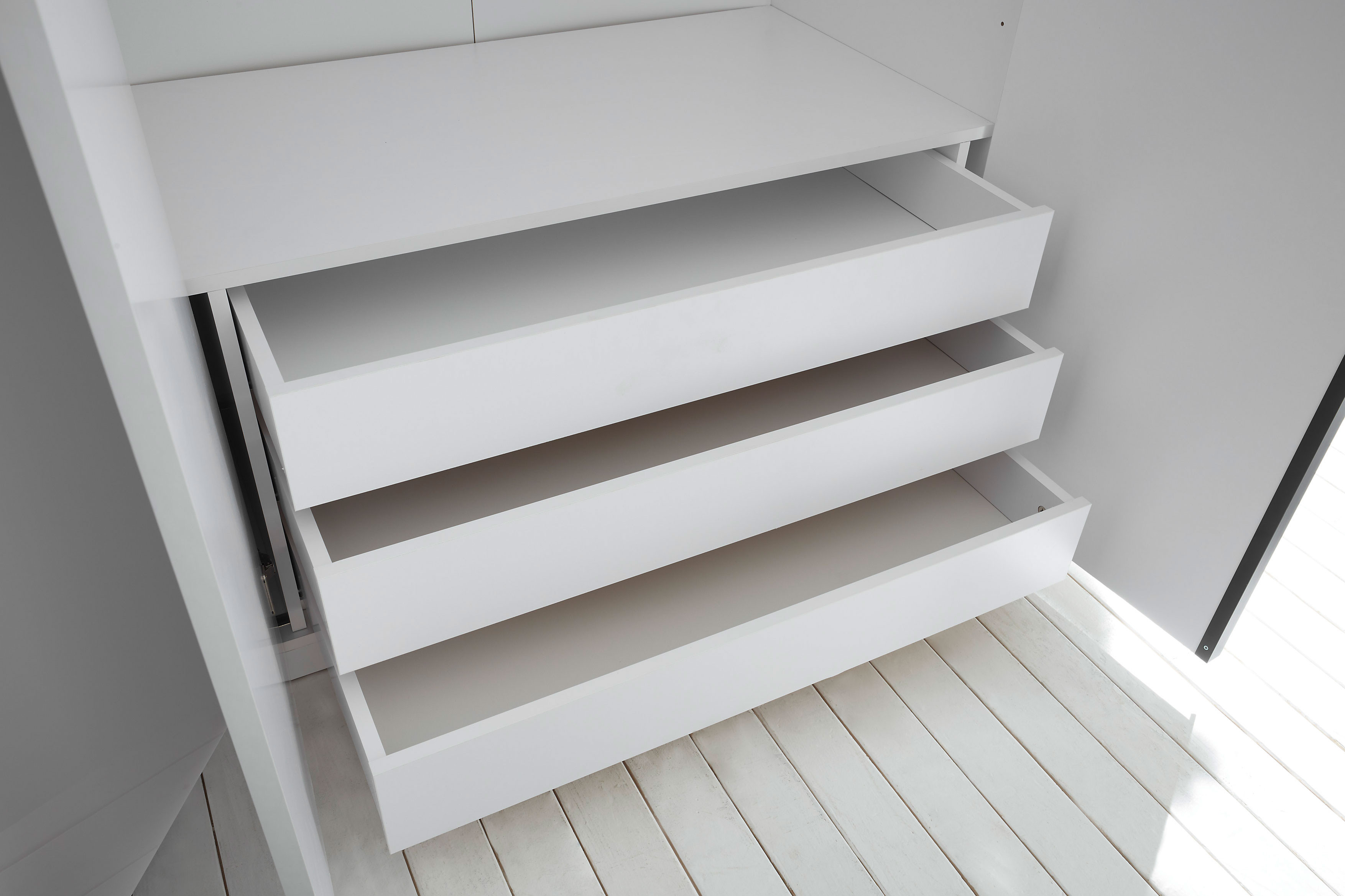 100er Element rechts: 2 Böden, 1 Kleiderstange und 1 Container mit 3 Schubladen