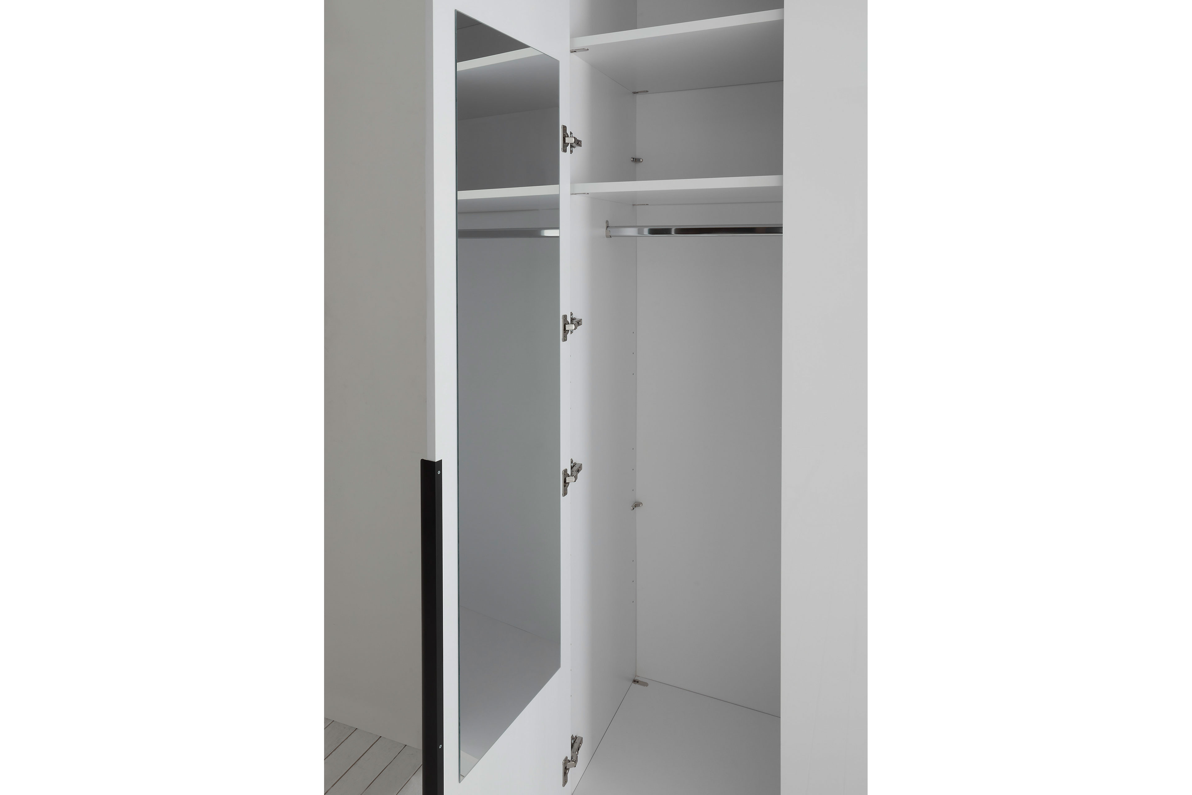 100er Element links: 2 Böden und 1 Kleiderstange, linke Tür-Innenseite mit Spiegel,