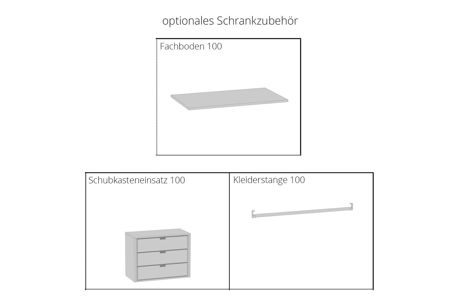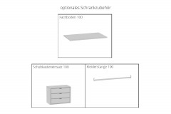 - Kleiderschrank: 1 Element ca. 100 cm breit mit 1 Fachboden und 1 Fachboden mit Verbinder mit Kleiderstange