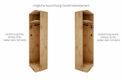 - Garderobenelement: offen, mit 1 Huthaken (in Griffausführung), 1 Mantelhaken (in Griffausführung), 1 Ablage-Boden und 1 Kleiderstange (schwarz)