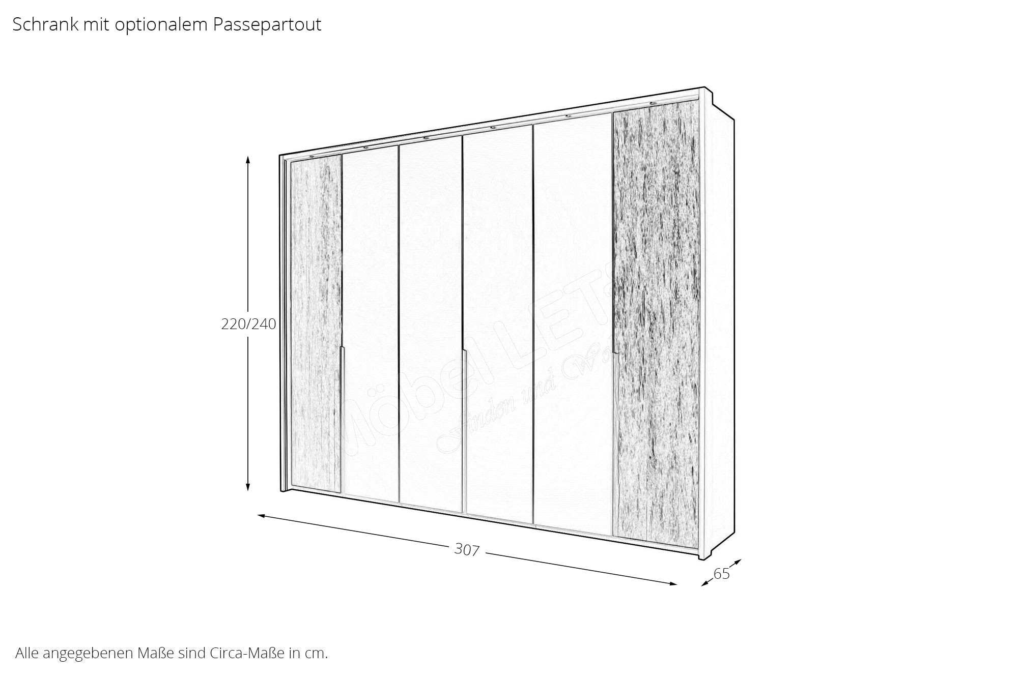 - Schrank: Drehtürenschrank, 6-türig, Außentüren in Absetzung
