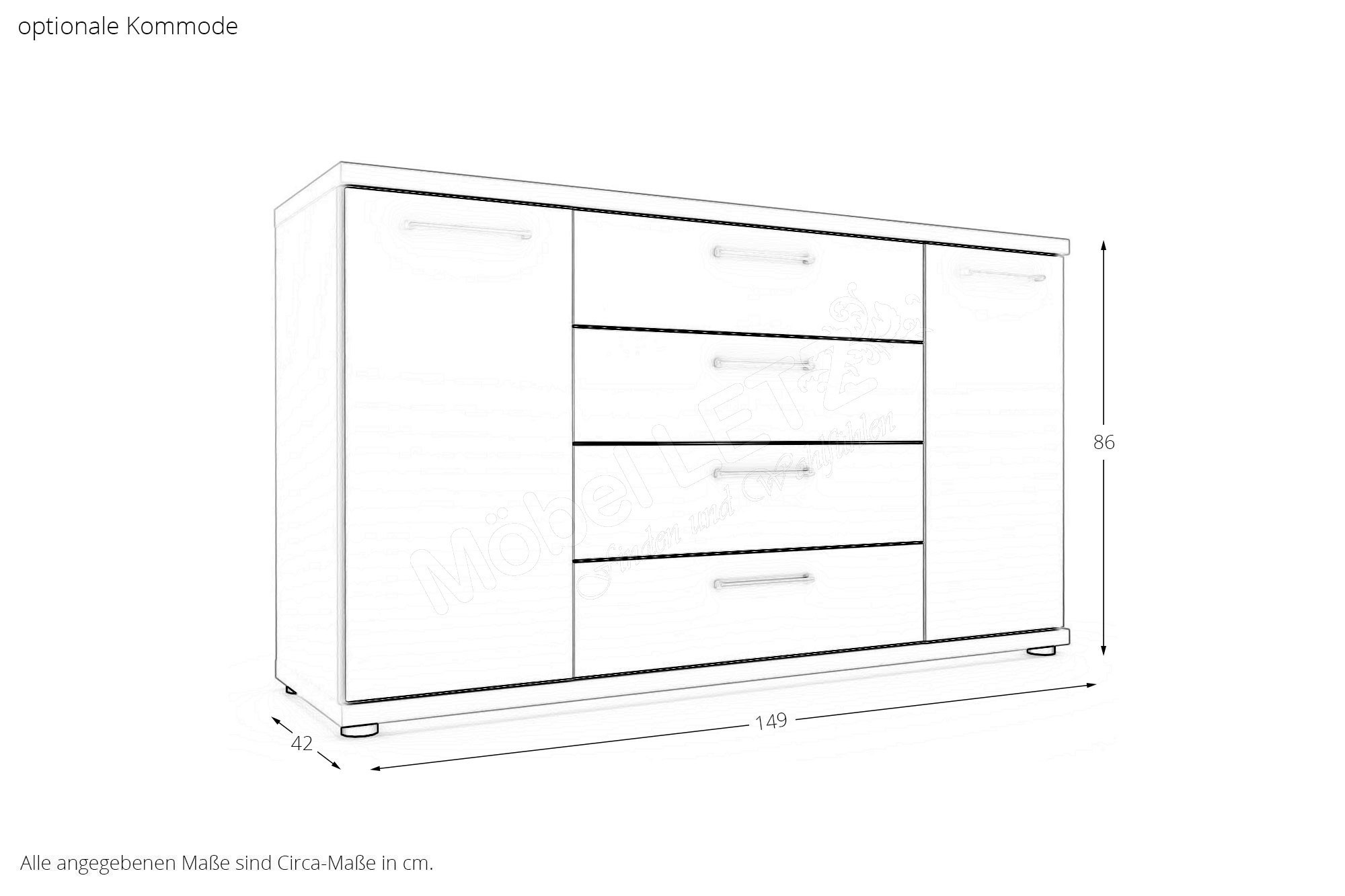- Schrank: 3-türig, Mitteltür mit Spiegelauflage