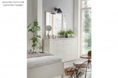 Die Einrichtung eines seniorengerechten Schlafzimmers ist dank des Möbel-Programms Bern von Wiemann kein Problem. Aus dem umfangreichen Typenplan dieses Modells stellen wir Ihnen hier einen ca. 150 cm breiten Drehtürenschrank vor, der mit seinem formschönen Äußeren und seinem geringen Stellmaß punktet. Der 3-türige, klassisch weiße Kleiderschrank schmückt sich mit einem effektvollen Spiegel und verfügt im Inneren über ein breites sowie ein schmales Schrank-Element. Jedes Abteil beherbergt serienmäßig zwei Einlegeböden und eine Kleiderstange. Mithilfe der Zusatzoptionen können Sie den Drehtürenschrank mit weiteren Fachböden, einem praktischen Kleiderlift und bei Bedarf außerdem mit Schubkästen ausrüsten. Zudem ist es möglich, den Kleiderschrank wahlweise auch in einer attraktiven Holznachbildung zu bestellen, wenn Sie einen Hauch Natürlichkeit wünschen. Über den modelleigenen Möbelkonfigurator können Sie gern auch eine komplette Schlafraum-Einrichtung planen und buchen, denn dort finden Sie alle verfügbaren Möbel und Zubehörteile des Schlafzimmer-Programms Bern aus dem Hause Wiemann.