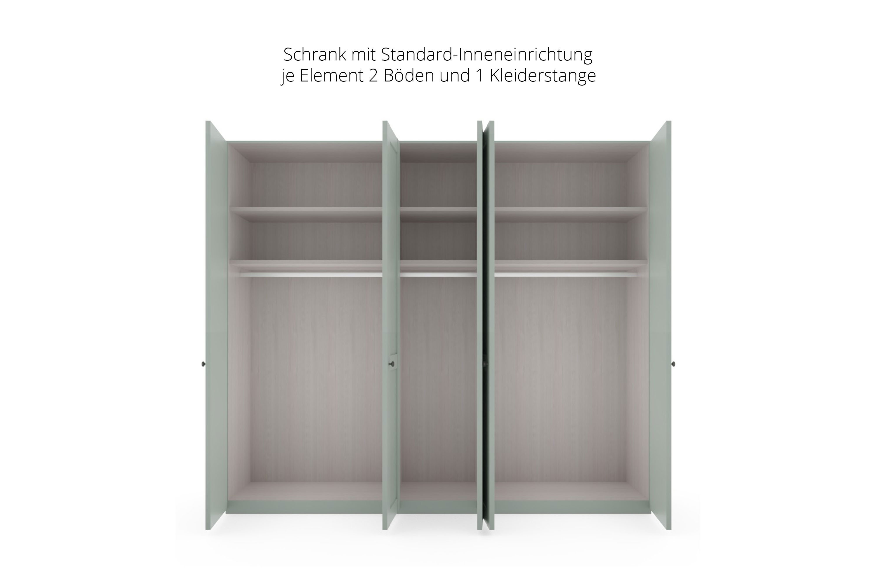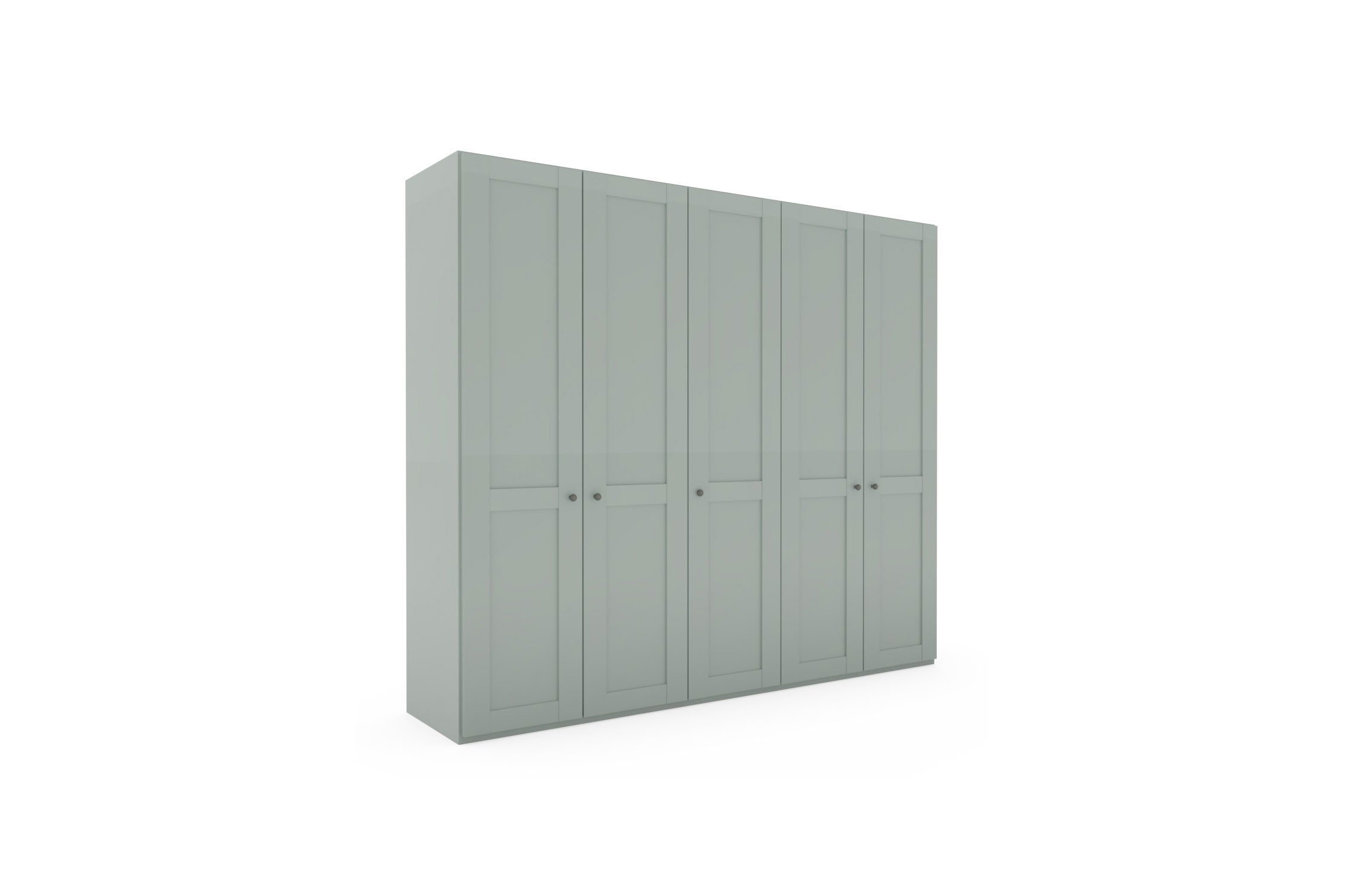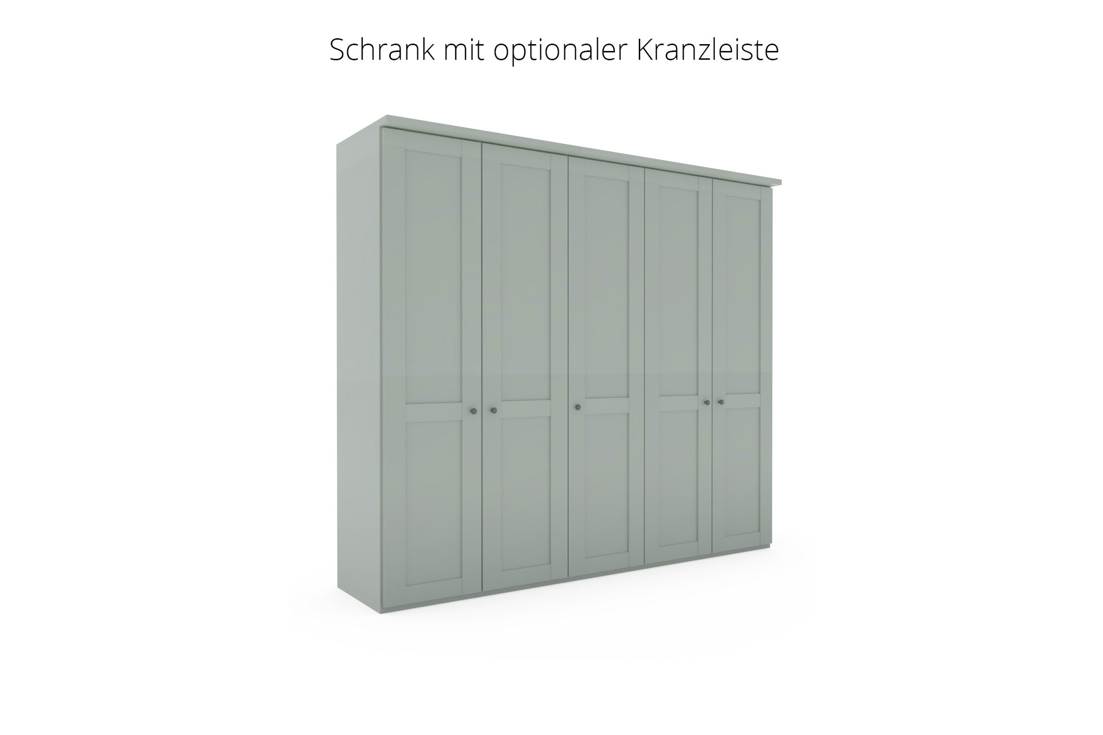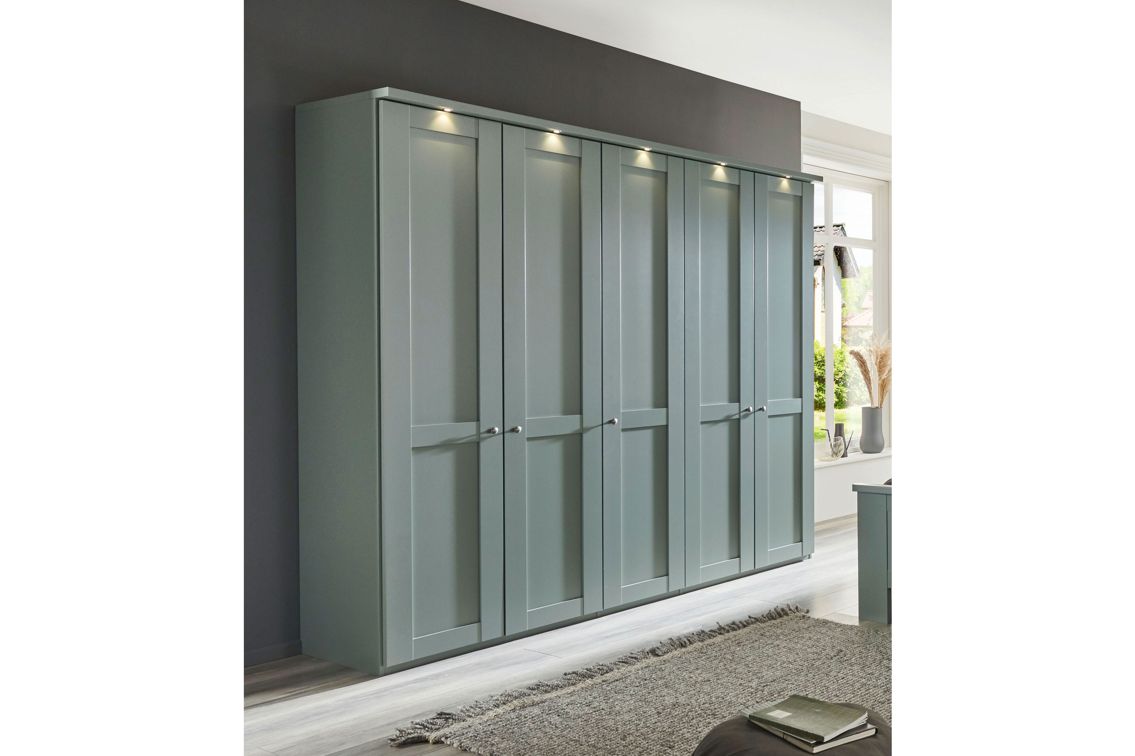 In sanftem Salbeigrün erscheint der Landhaus-Kleiderschrank Marlow von Wiemann besonders idyllisch. Charakteristische Rahmenprofile und dezente Knopfgriffe unterstreichen die ländliche Gemütlichkeit, die alle modellzugehörigen Marlow-Möbel ausstrahlen. Im Inneren des Ordnungshüters, der mit fünf Drehtüren inklusive gedämpfter Scharniere ausgerüstet ist, befinden sich drei robuste Kleiderstangen und sechs Wäscheböden, die für die Unterbringung von auf Bügeln hängenden und zusammengelegten Kleidungsstücken geeignet sind. Kleinteilige Textilien wie Unterwäsche und Strumpfwaren können in den zubuchbaren Schubladen ihren Platz finden. Mithilfe der Zusatzoptionen kann der Wiemann Drehtürenschrank in weiteren Farb-Varianten und auf Wunsch auch mit Spiegelauflagen ausgewählt werden. Passende Betten und Beimöbel finden Sie bei Bedarf im Möbel Letz Online-Shop in den entsprechenden Kategorien unserer Wohnwelten.