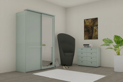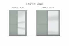 - Kleiderschrank: 2-türig, davon 1 Holztür mit Querriegel (links) und 1 Spiegeltür (rechts)