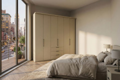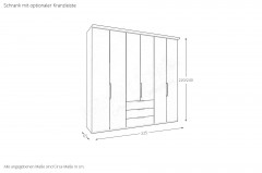 - Kleiderschrank: 6-türig, mit 3 Schubkästen mittig