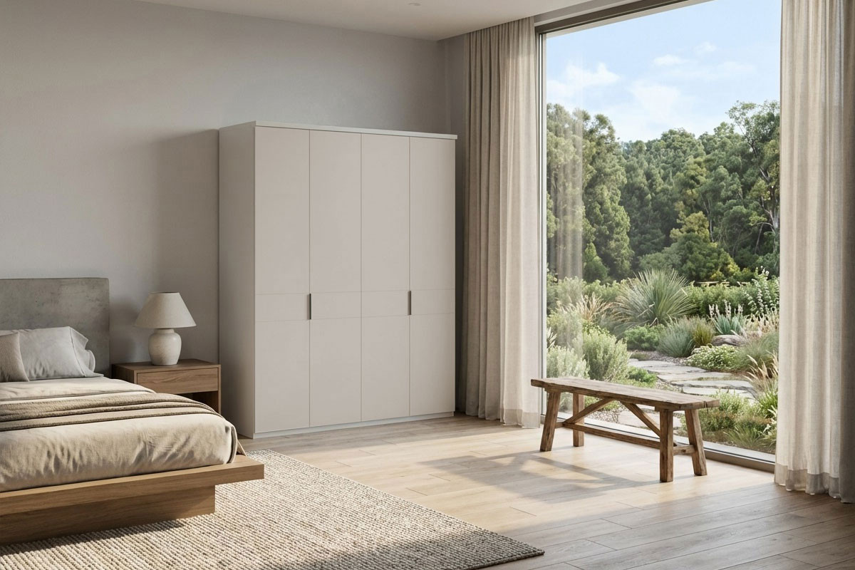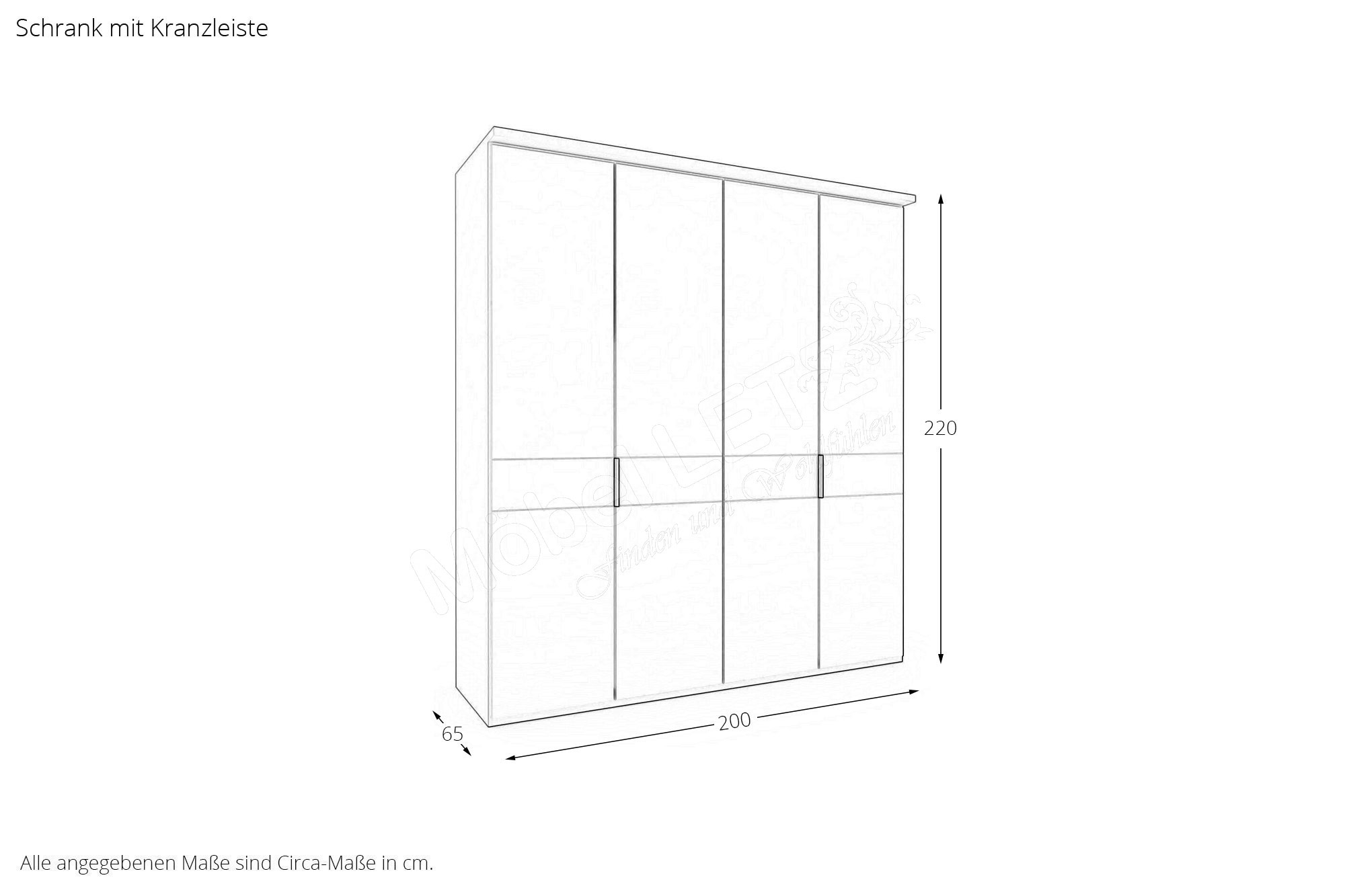 - Kleiderschrank: mit Kranzleiste, 4-türig, Front mit Querriegel