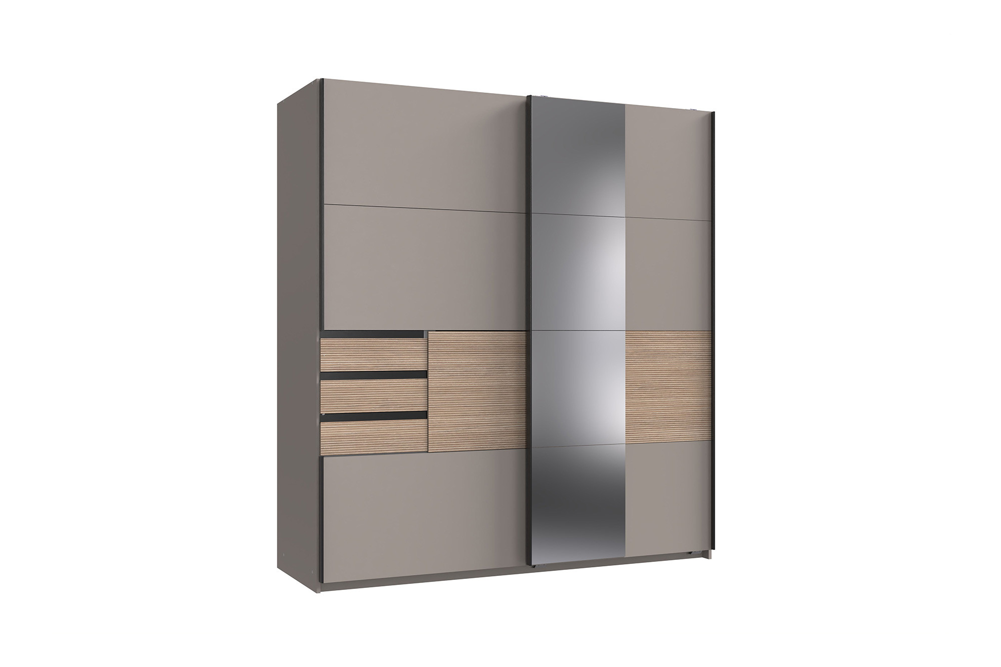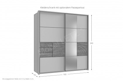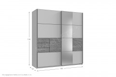 - Schwebetürenschrank: 2-türig mit 3 Schubkästen & 1 Spiegel