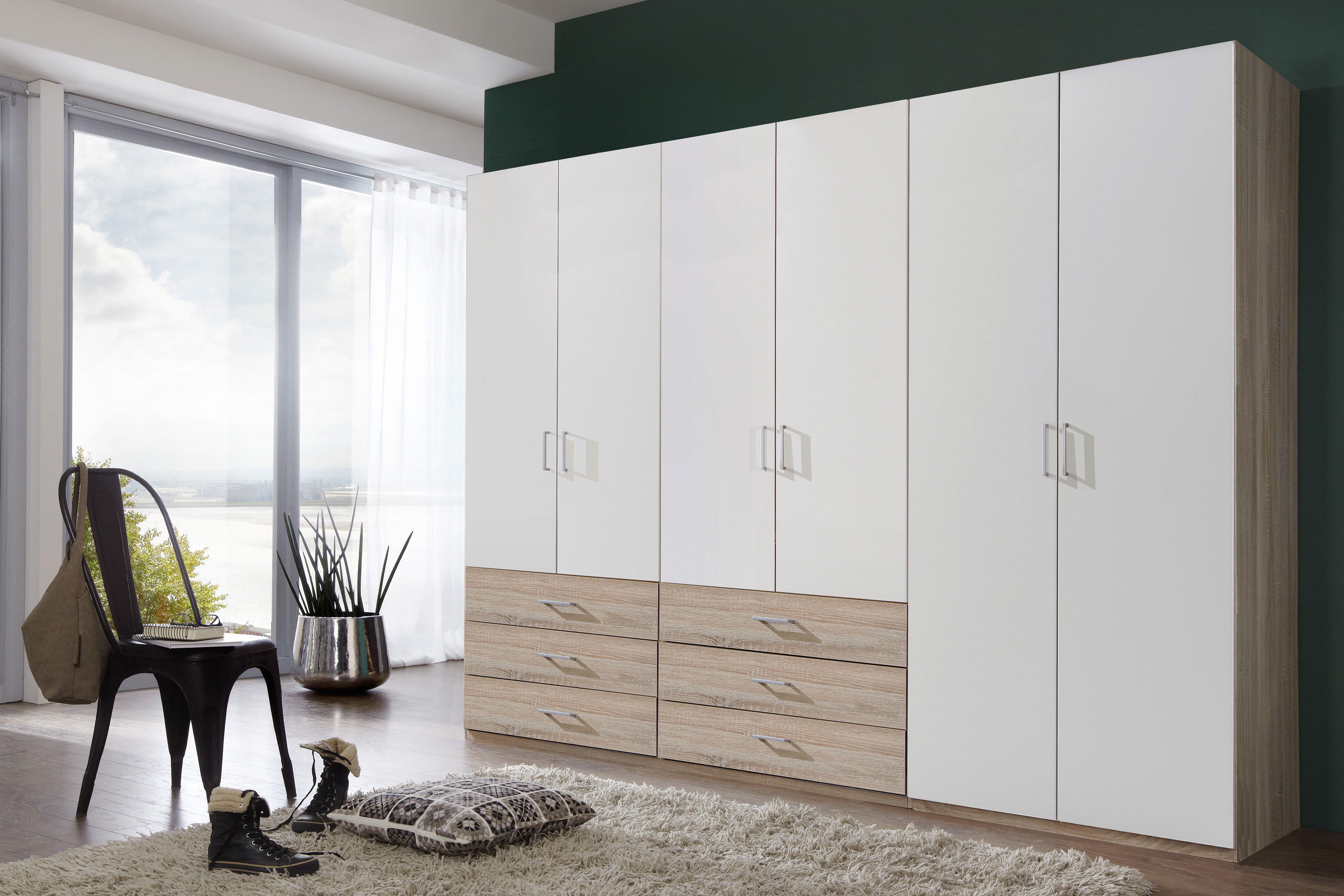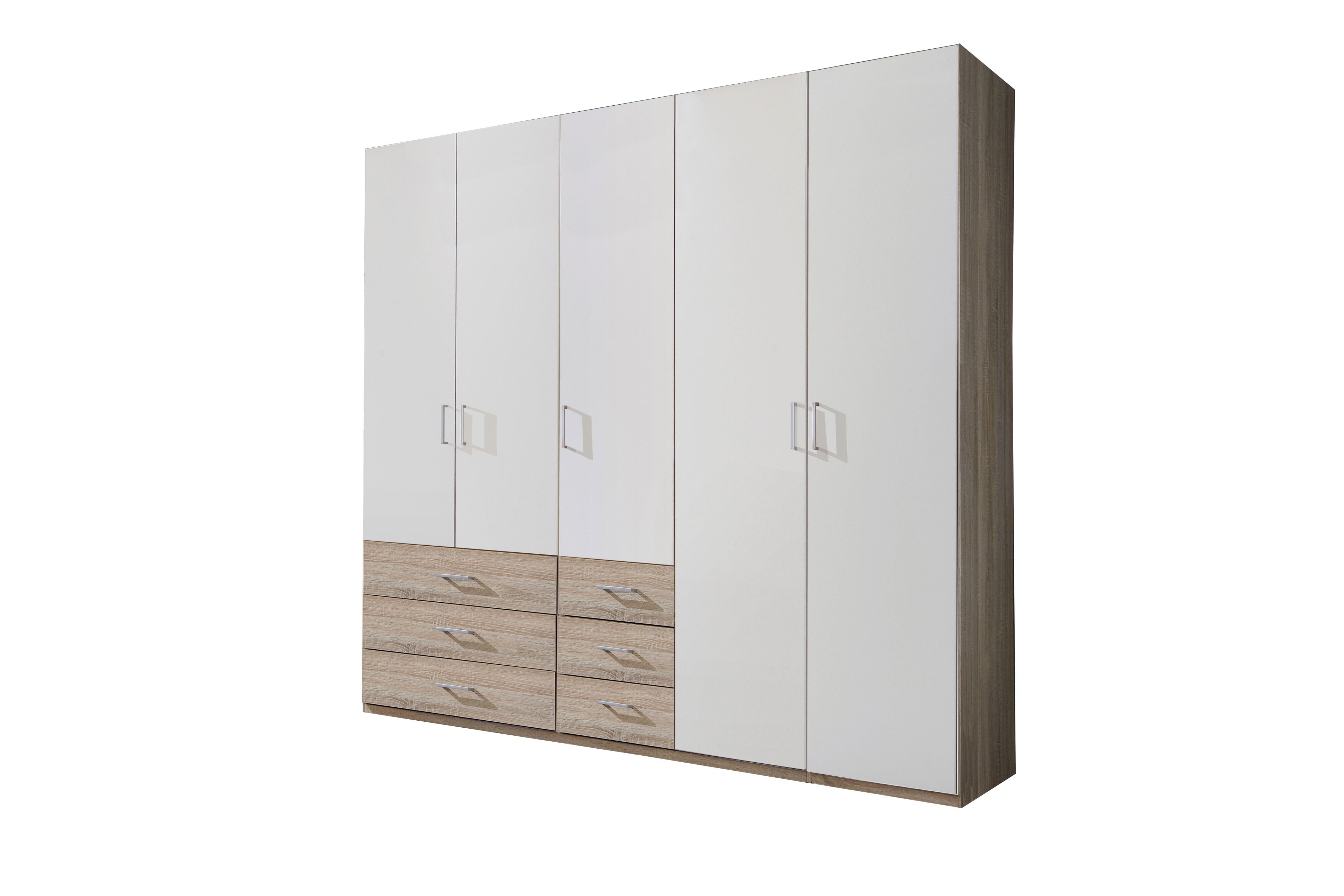 Dekor D08 - weiß, Schubkästen Schwarzeiche-Nachbildung - optionale Kleiderschrankbreite: