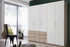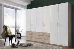 - Kleiderschrank: 5 Drehtüren, 6 Schubkästen