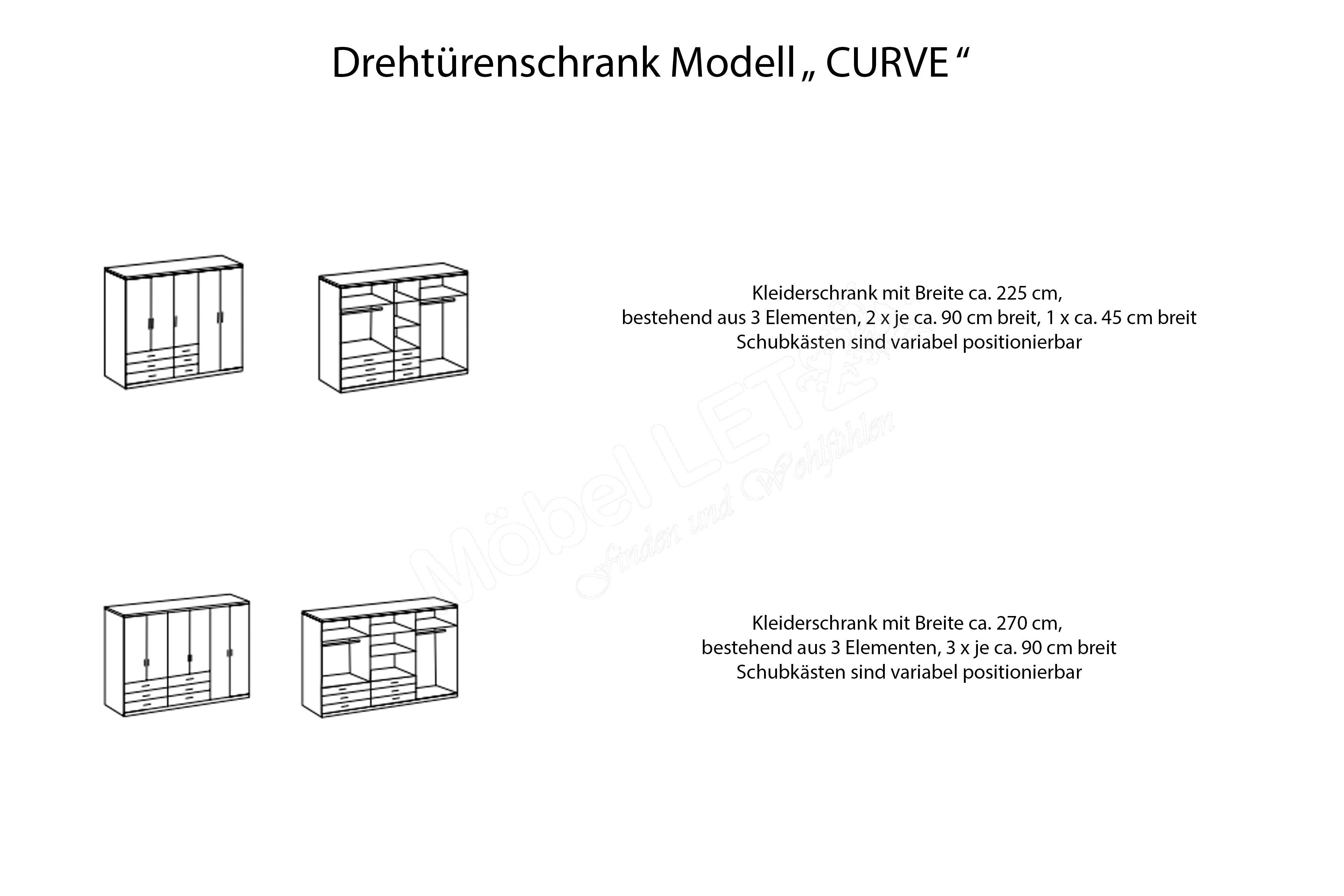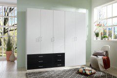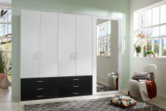 - Kleiderschrank: 5 Drehtüren, 6 Schubkästen