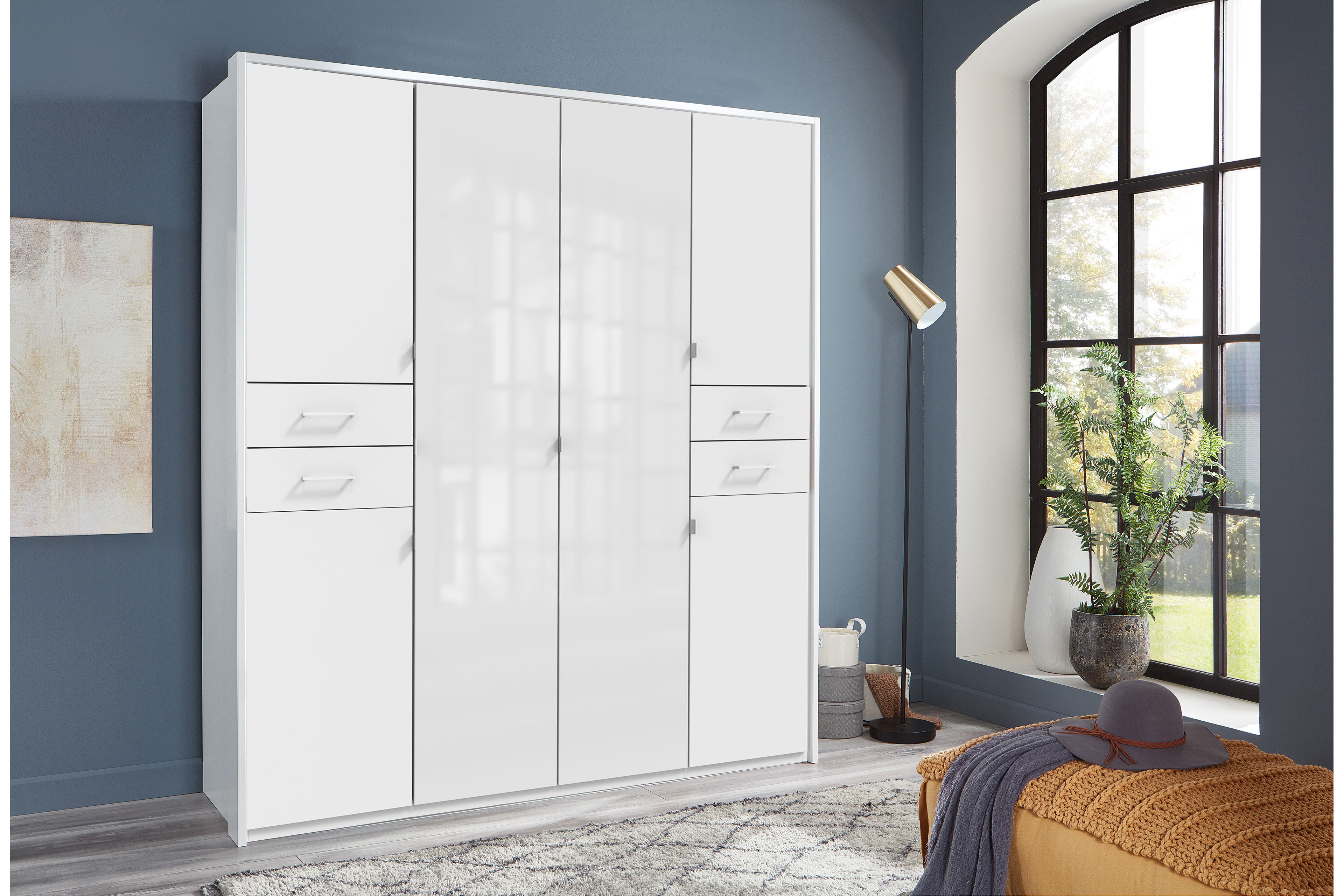 Der Kleiderschrank Danzig von Wimex schenkt Ihnen großen Stauraum auf kleiner Fläche. Der Schrank ist gerade mal knapp 183 cm breit und hat dennoch allerhand zu bieten: Hinter seinen zwei Glastüren verbirgt sich ein etwa 90 cm breites Schrankelement, das sowohl eine Kleiderstange als auch einen Wäscheboden beherbergt. Somit eignet sich das mittlere Schrankteil perfekt für sommerliche Jacken, warme Wintermäntel, bunte Blusen und schicke Hemden. Links und rechts außen besitzt der Wimex Schrank gleich noch praktische Schubkästen für kleinere Textilien und Wäschestücke. Die Schubfächer sind dank ihrer durchdachten Höhe bequem erreichbar. Ob beim Einräumen oder beim Herausholen – hier erreichen Sie den Inhalt in körperschonender Haltung und müssen sich nicht extra bücken. Mit unseren Zusatzoptionen können Sie den Kombischrank mit weiteren Einlegeböden ausstatten und auf Wunsch in einer anderen Farbe bestellen. Noch mehr Zubehör und weitere Schrankgrößen finden Sie im Konfigurator. Danzig von Wimex – geräumig und doch nicht zu groß ...