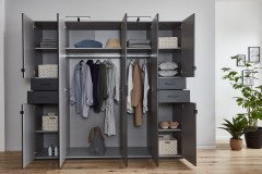 - Drehtürenschrank: 7-türig mit 4 Schubkästen