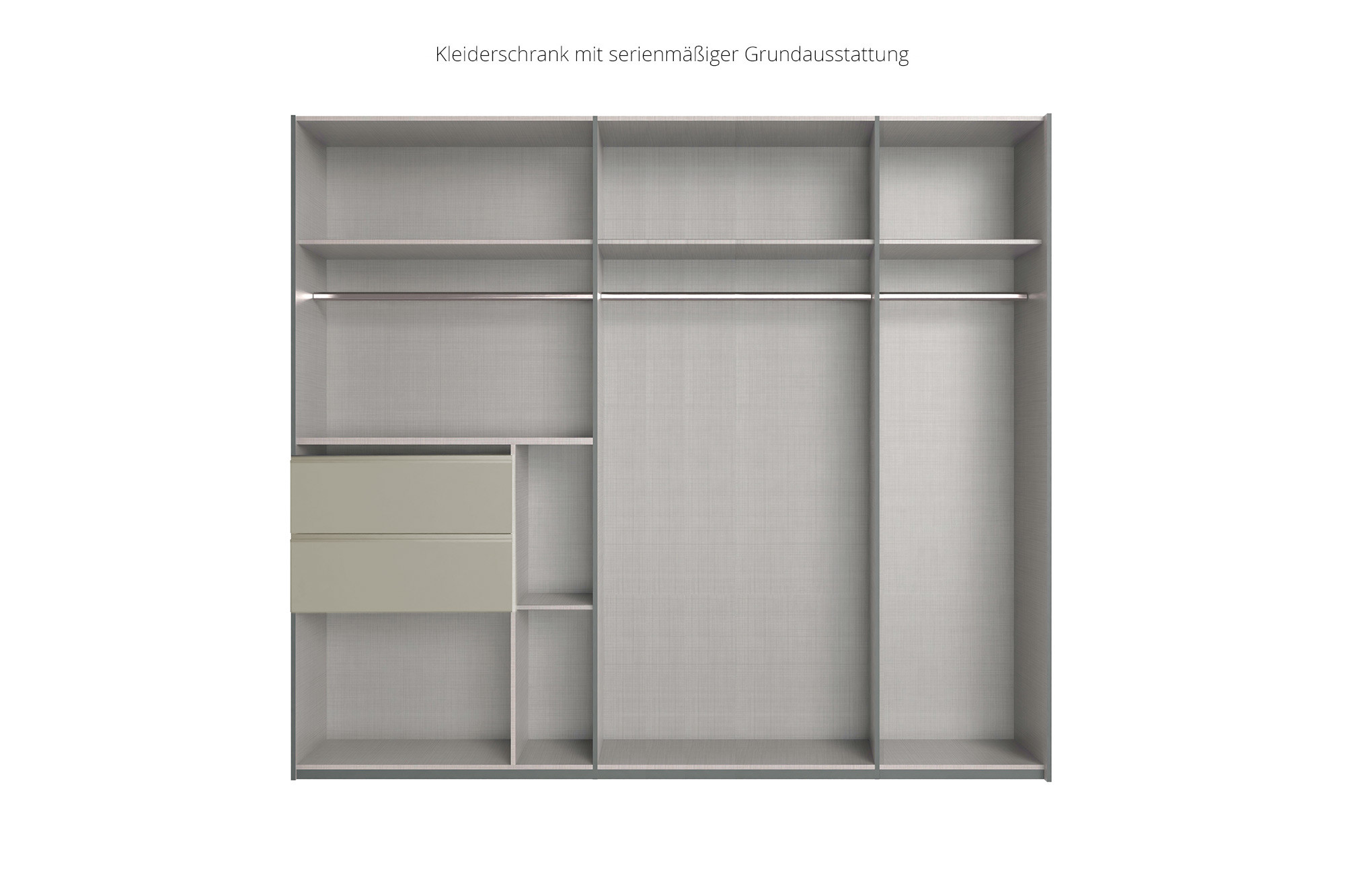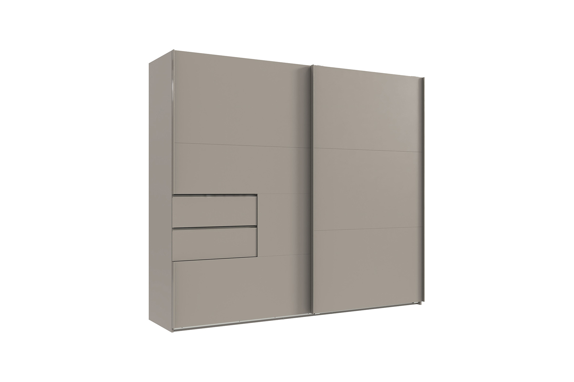 Holen Sie sich mit Palermo von Wimex einen modernen Schwebetürenschrank nach Hause, der mit elegantem Aussehen, viel Platz und cleveren Funktionen begeistert. Mit seinen erhältlichen Farben und Holznachbildungen zaubert der Schrank aus der „Fresh-to-go“-Kollektion eine besondere Atmosphäre ins Schlafzimmer. Ob wie hier in sanftem Saharagru, in edlem Grafit oder für mehr Natürlichkeit in warmer Artisan-Eiche – Palermo von Wimex schenkt Ihnen in der ca. 250 cm breiten Variante viel Platz zum Verstauen. Besonders vorteilhaft zeigen sich die zwei eingelassenen Schubkästen: Zum einen sind sie auch bei geschlossenen Türen zugänglich und zum anderen befinden sich die Schubladen in einer bequem erreichbaren Höhe. Hinter den Schwebetüren bietet der Wimex Kleiderschrank gleich drei Schrankelemente, die sich in zwei knapp 100 cm breite und ein etwa 50 cm breites Element unterteilen. Mit unseren Zusatzattributen können Sie kinderleicht aus den verfügbaren Farben und weiterem Schrankzubehör wählen. Hier finden Sie komfortable Dämpfungsbeschläge und eine Vielzahl an buchbaren Fachböden, die Ihnen die Ordnung im Schrank besonders leicht machen.