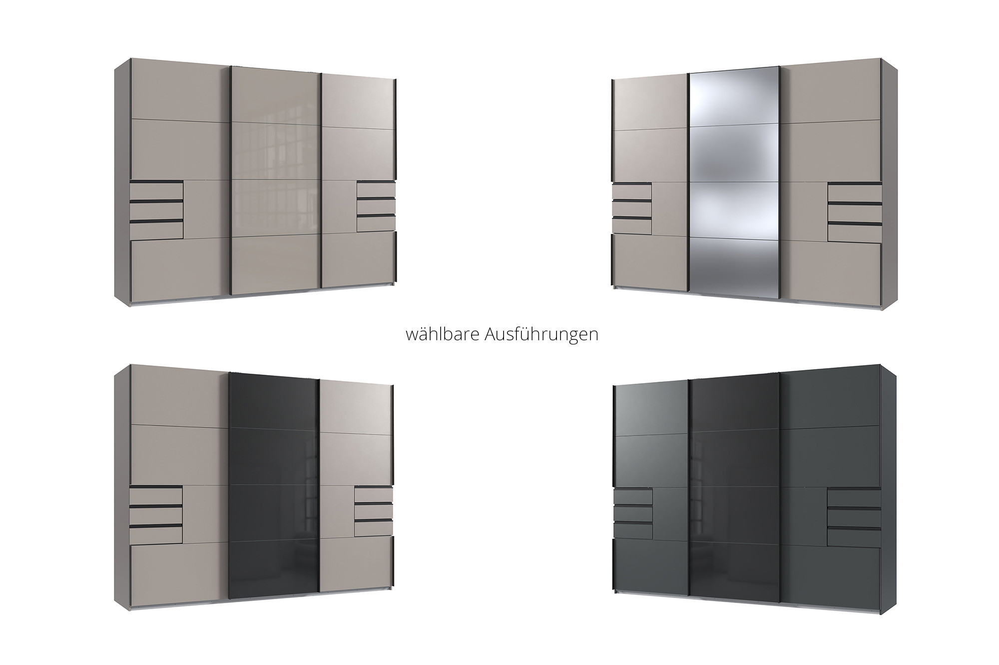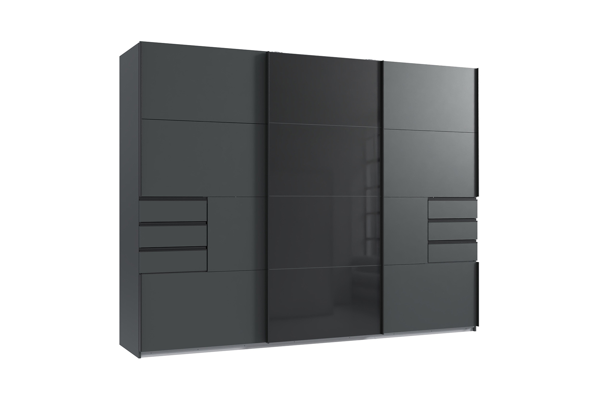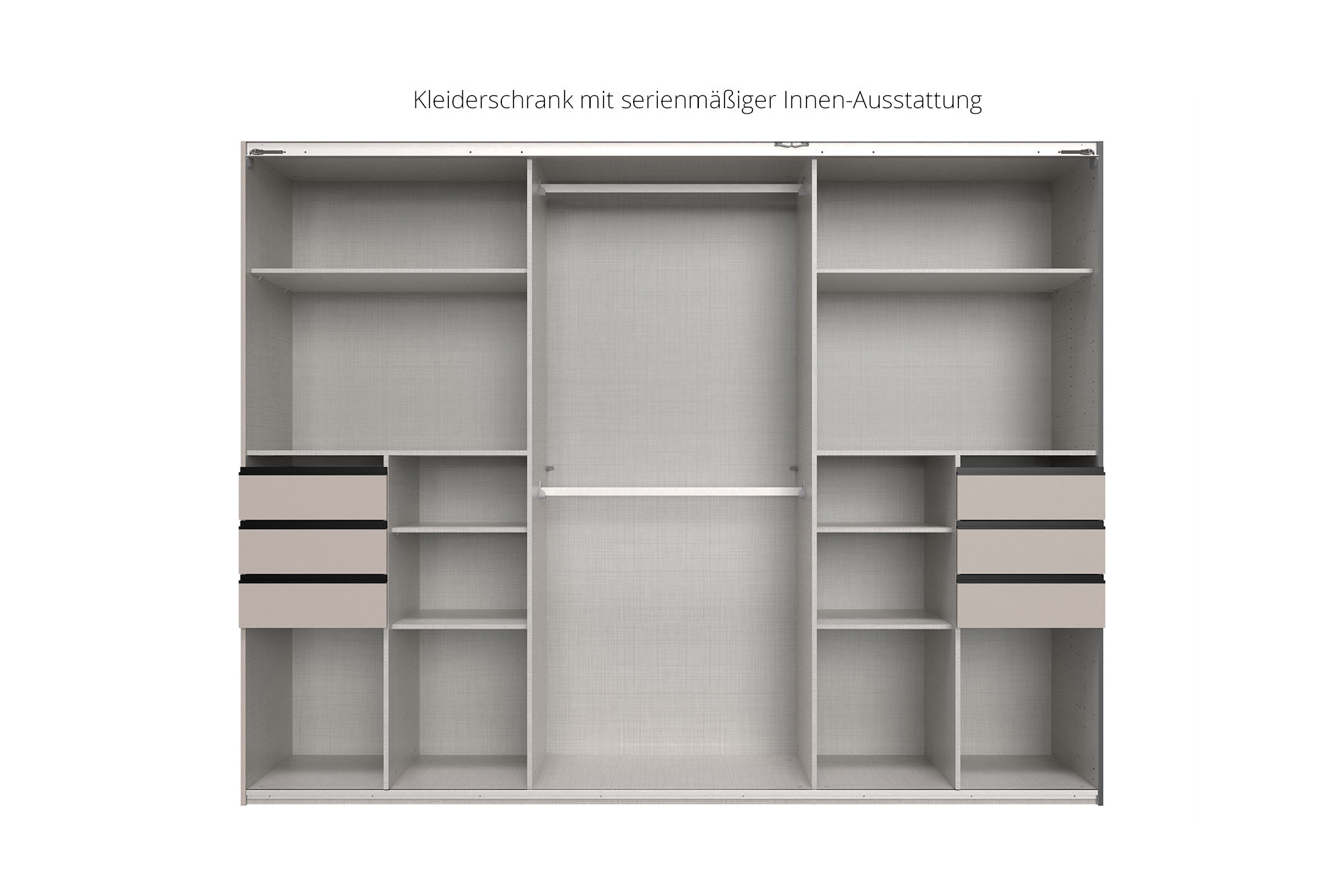 - Schwebetürenschrank: 3-türig mit 6 Schubkästen