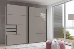 - Schwebetürenschrank: 2-türig mit 3 Schubkästen