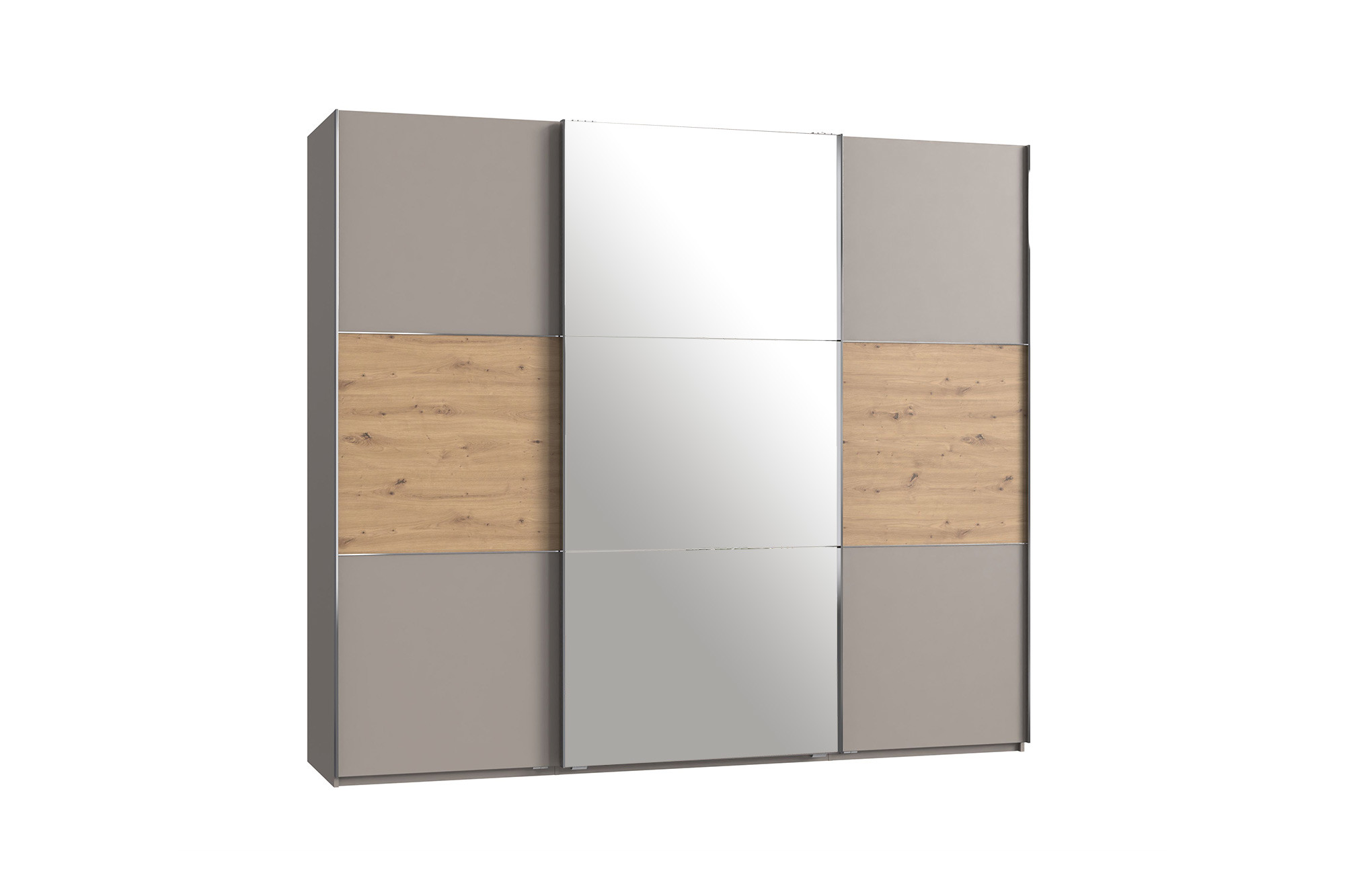 Erleben Sie mit dem Schwebetürenschrank Indiana von Wimex ordentliche Eleganz im Schlafzimmer. Denn hier vereinen sich formschöne Optik, eine durchdachte Innenaufteilung und hochwertige Materialien zu einer Traumlösung für Kleidung, Textilien und Wäsche. Dank der modernen Schwebebetüren sparen Sie Platz und gewinnen gleichzeitig eine großzügige, übersichtliche Aufbewahrung. Den Kleiderschrank von Wimex gibt es in zwei Breiten und vier Farbausführungen, sodass er sich flexibel an verschiedene Schlafzimmergrößen und Einrichtungsstile anpasst. Dank der gedämpften Türen öffnet und schließt der Schrank leise, fördert eine ruhige Schlafumgebung und erhöht die Langlebigkeit der Beschläge. Die enthaltene Innenausstattung mit einer T-Einteilung und einem Schubkasteneinsatz mit 3 Schubladen sorgt für eine klare Sortierung und einen aufgeräumten Kleiderschrank. Die verfügbaren Breiten mit ca. 250 cm und etwa 300 cm ermöglichen eine individuelle Anpassung an Ihren vorhandenen Platz im Schlafzimmer. Die Farbvarianten Weiß, Saharagrau und Graphit erlauben Ihnen eine Raumgestaltung mit wahlweise harmonischen Akzenten oder markanten Kontrasten. Entscheiden Sie selbst und freuen Sie sich über einen eleganten Schrank, der Ihnen ein tolles Ordnungskonzept schenkt ...