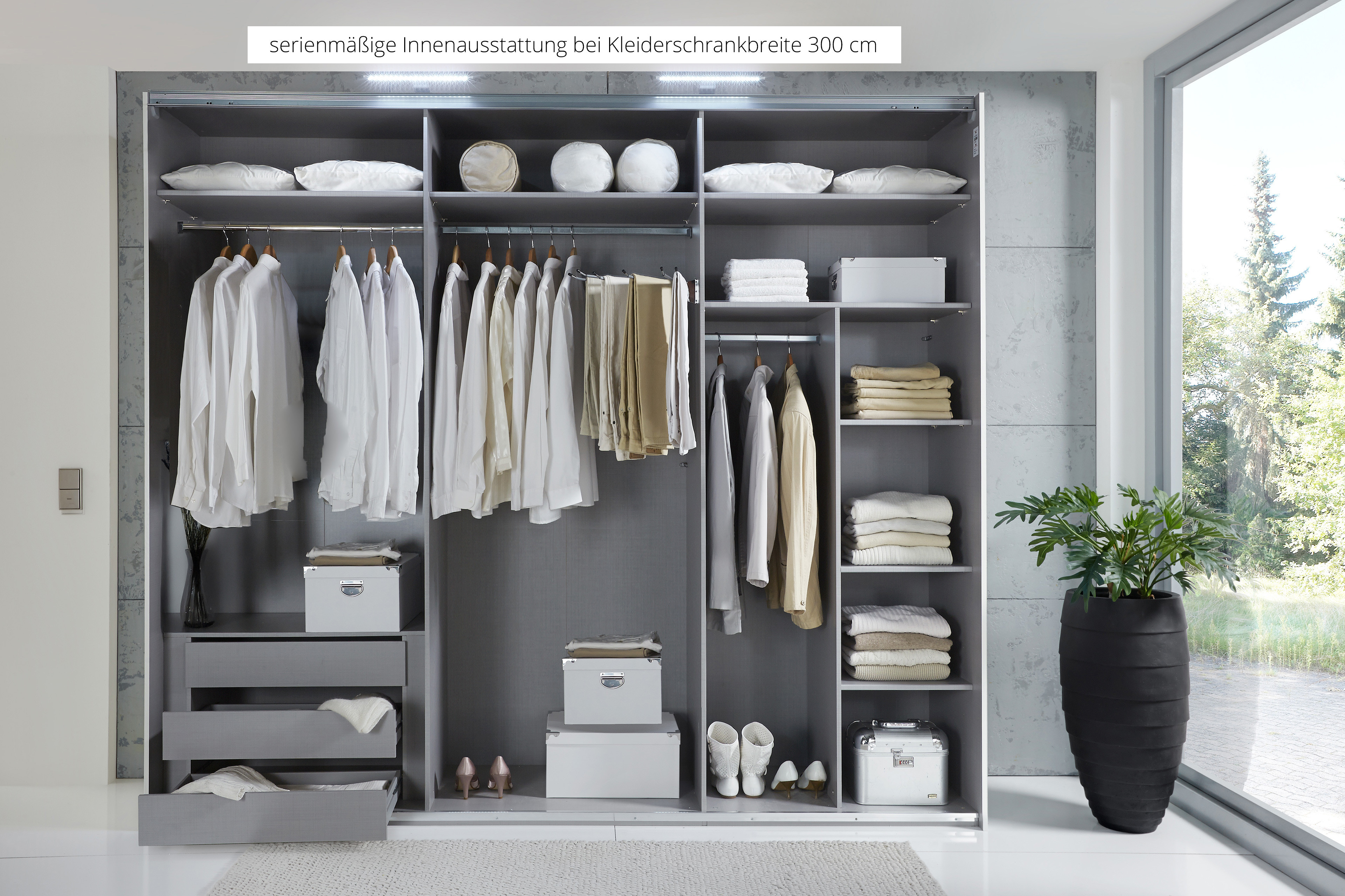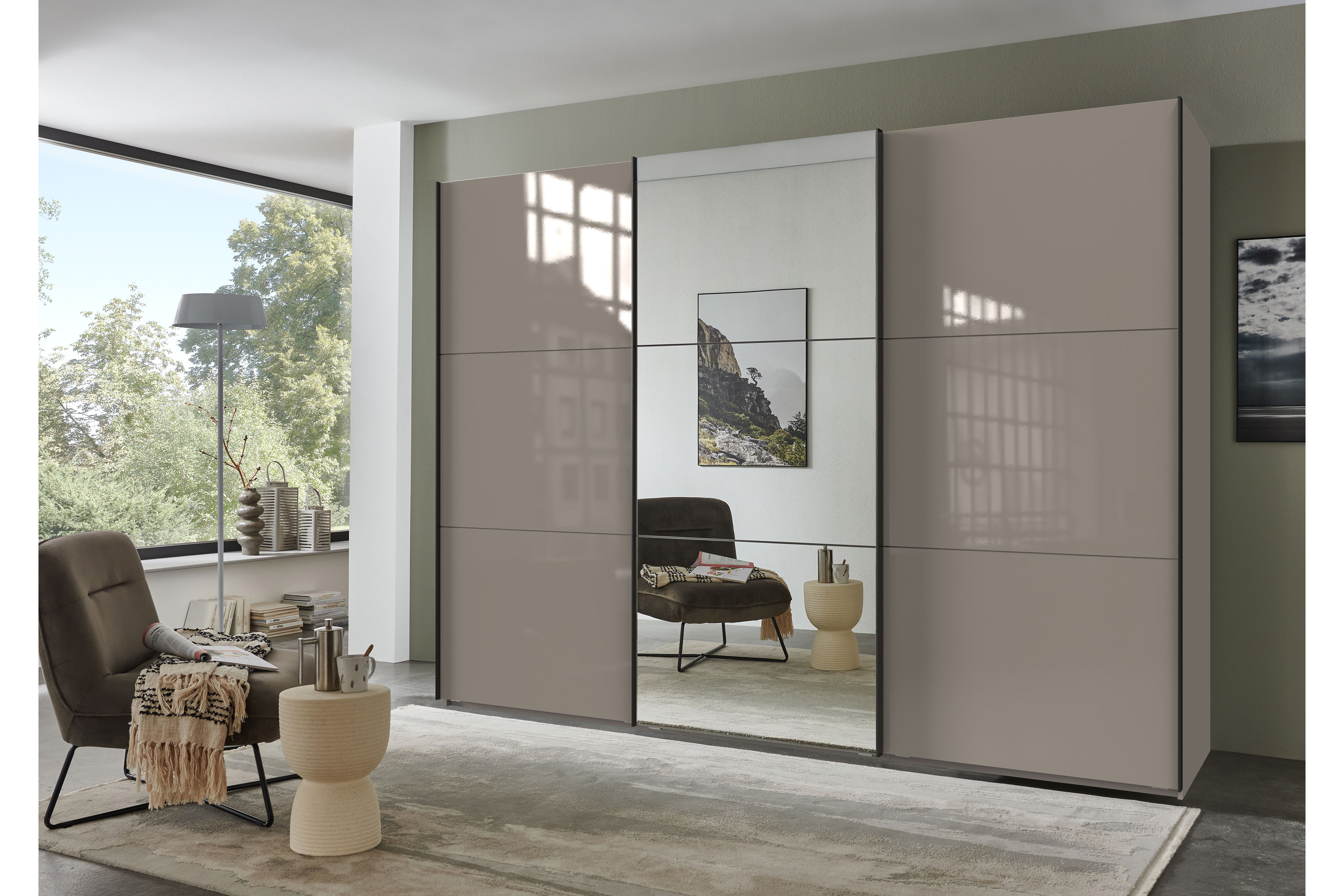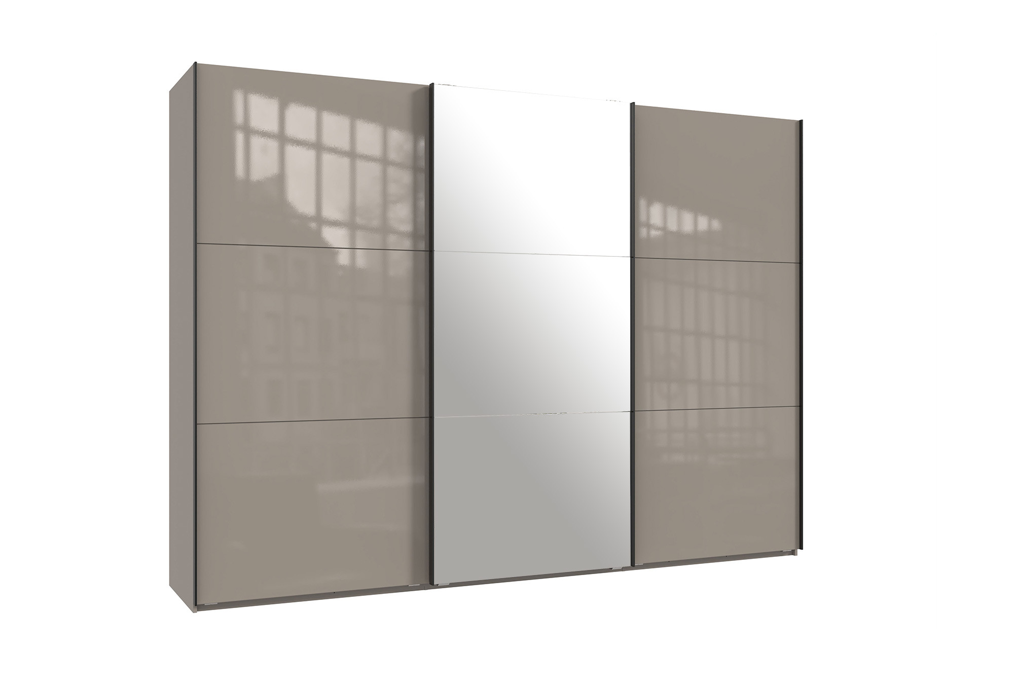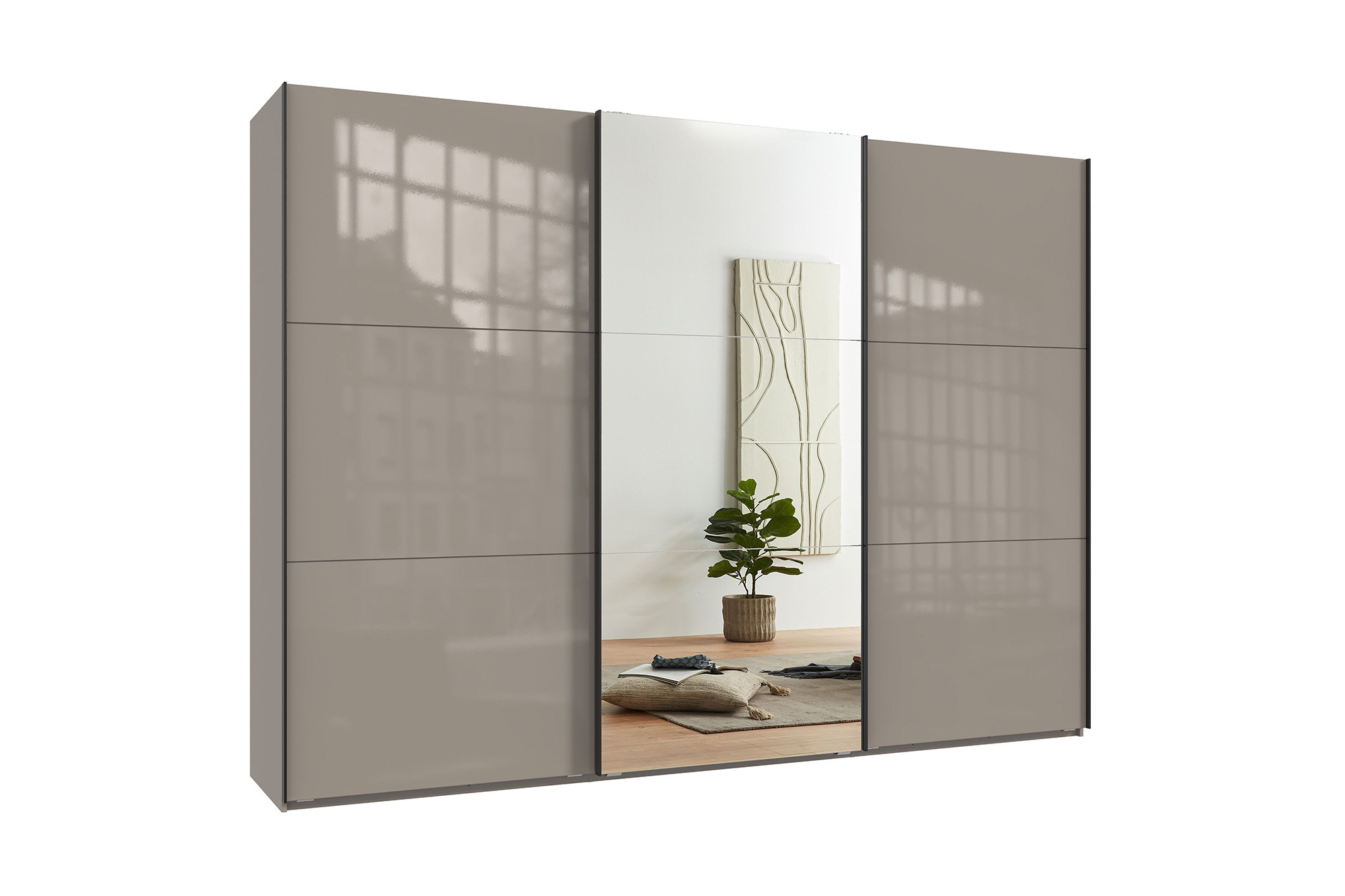 Entdecken Sie den Kleiderschrank Indiana-C von Wimex – zeitlos elegant, funktional und perfekt auf Ihr Schlafzimmer abgestimmt. Dieser 3-türige Schwebetürenschrank überzeugt mit einer hochwertigen Glasfront, die jedem Raum eine elegant schimmernde Note verleiht. Wählen Sie aus zeitlosem Weiß, sanftem Sahara oder noblem Grafitgrau Ihren Favoriten. Alle Ausführungen besitzen schwarze Griffleisten, die moderne Akzente setzen. Aber was macht diesen Kleiderschrank so besonders? Indiana-C ist mit seiner vorgefertigten Innenaufteilung sofort einsatzbereit. Neben der Standard-Ausstattung, die Fachböden und Kleiderstangen beinhaltet, begeistert der Schrank von Wimex zusätzlich mit gedämpften Türen, einer T-Einteilung und einem Schubkasten-Einsatz. Indiana-C bietet daher nicht nur großzügigen Stauraum, sondern organisiert Ihren Schrankinhalt optimal. Die T-Einteilung sorgt für klare, übersichtliche Fächer, während der Schubkasteneinsatz mit drei Schubladen zusätzlichen Platz für kleinere Gegenstände schafft. Die gedämpften Glastüren ermöglichen eine sanfte, geräuscharme Bedienung, die einen leiseren Alltag unterstützt und den Kleiderschrank schont. Wimex Möbel stehen für zuverlässige Qualität und durchdachte Raumkonzepte. Der Schrank Indiana-C vereint eine attraktive Optik mit langlebiger Funktionalität – perfekt für ein aufgeräumtes Schlafzimmer mit Stil. Wählen Sie nun noch Ihre Wunschfarbe und entscheiden Sie sich zwischen den beiden Schrankbreiten, die sich mit ca. 250 cm oder etwa 300 cm an verschiedene Raumgrößen anpassen.