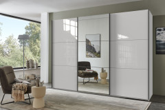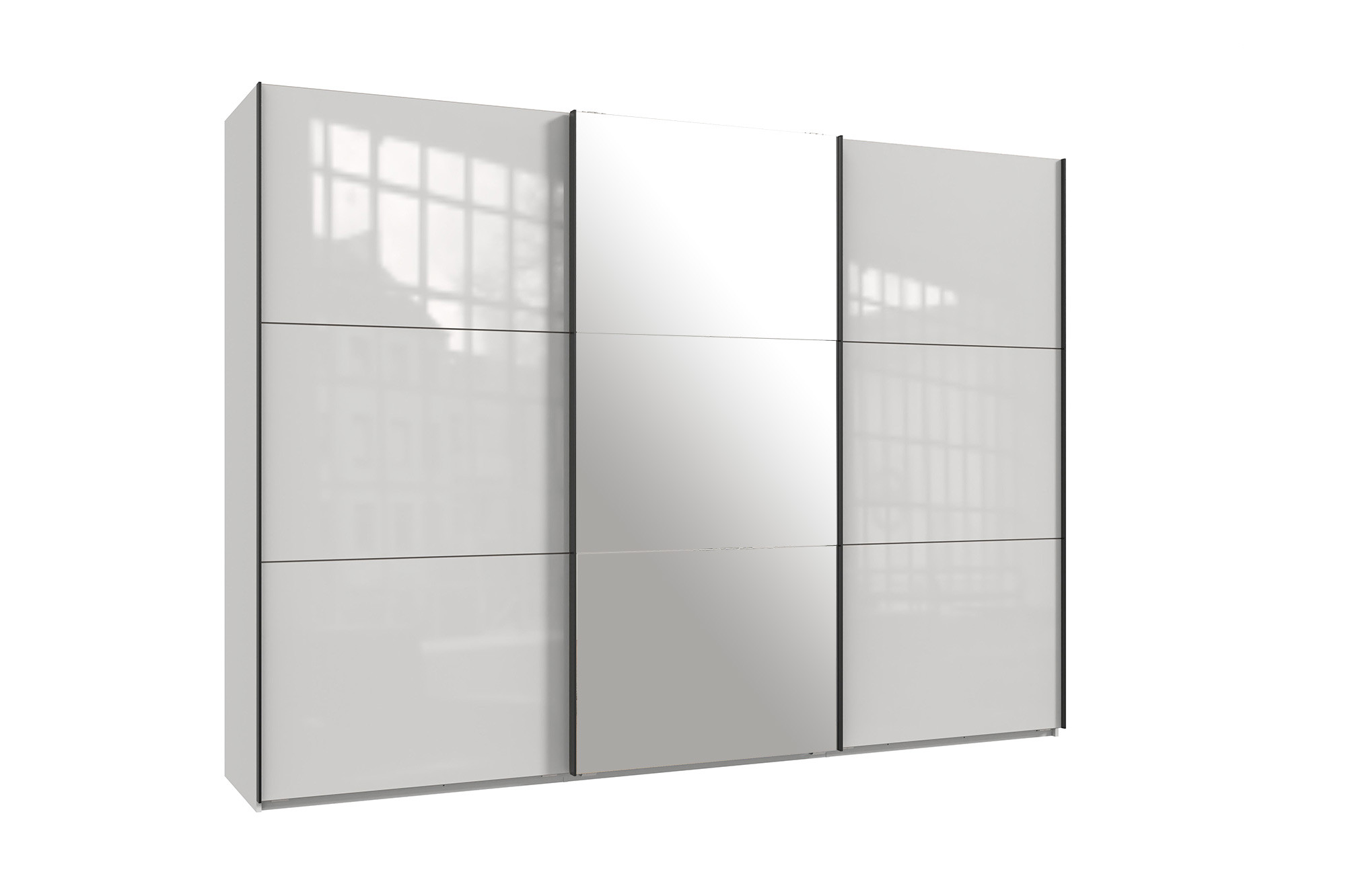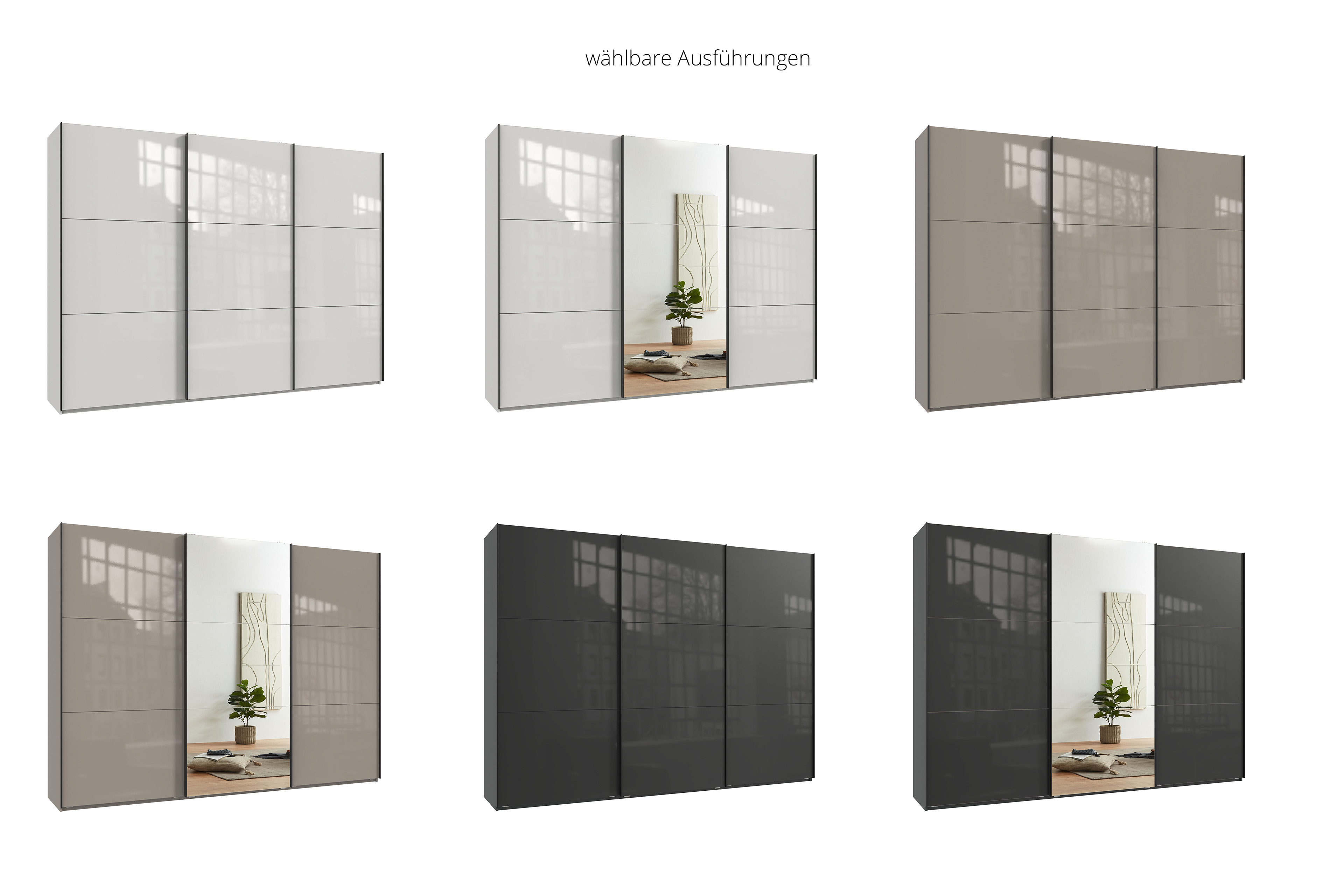 Entdecken Sie den Kleiderschrank Indiana-C von Wimex – zeitlos elegant, funktional und perfekt auf Ihr Schlafzimmer abgestimmt. Dieser 3-türige Schwebetürenschrank überzeugt mit einer hochwertigen Glasfront, die jedem Raum eine helle, freundliche Note verleiht. Wählen Sie aus zeitlosem Weiß, sanftem Sahara oder noblem Grafitgrau Ihren Favoriten. Alle Ausführungen besitzen schwarze Griffleisten, die moderne Akzente setzen. Aber was macht diesen Kleiderschrank so besonders? Indiana-C ist mit seiner vorgefertigten Innenaufteilung sofort einsatzbereit. Neben der Standard-Ausstattung, die Fachböden und Kleiderstangen beinhaltet, begeistert der Schrank von Wimex zusätzlich mit gedämpften Türen, einer T-Einteilung und einem Schubkasten-Einsatz. Indiana-C bietet daher nicht nur großzügigen Stauraum, sondern organisiert Ihren Schrankinhalt optimal. Die T-Einteilung sorgt für klare, übersichtliche Fächer, während der Schubkasteneinsatz mit drei Schubladen zusätzlichen Platz für kleinere Gegenstände schafft. Die gedämpften Glastüren ermöglichen eine sanfte, geräuscharme Bedienung, die einen leiseren Alltag unterstützt und den Kleiderschrank schont. Wimex Möbel stehen für zuverlässige Qualität und durchdachte Raumkonzepte. Der Schrank Indiana-C vereint eine attraktive Optik mit langlebiger Funktionalität – perfekt für ein aufgeräumtes Schlafzimmer mit Stil. Wählen Sie nun noch Ihre Wunschfarbe und entscheiden Sie sich zwischen den beiden Schrankbreiten, die sich mit ca. 250 cm oder etwa 300 cm an verschiedene Raumgrößen anpassen.