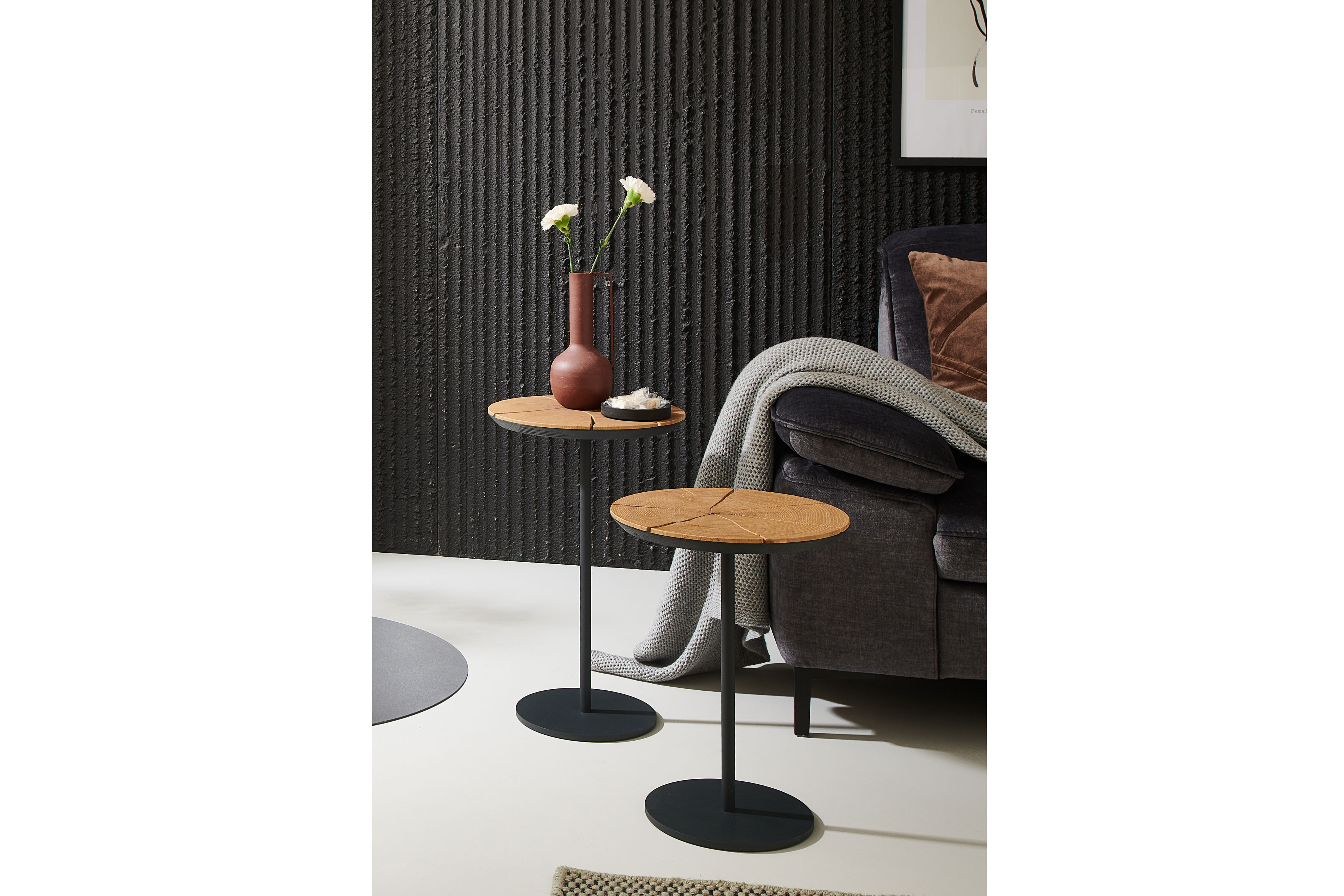 Beistelltisch mit runder Tischplatte, Metall mit Hirnholzapplikation