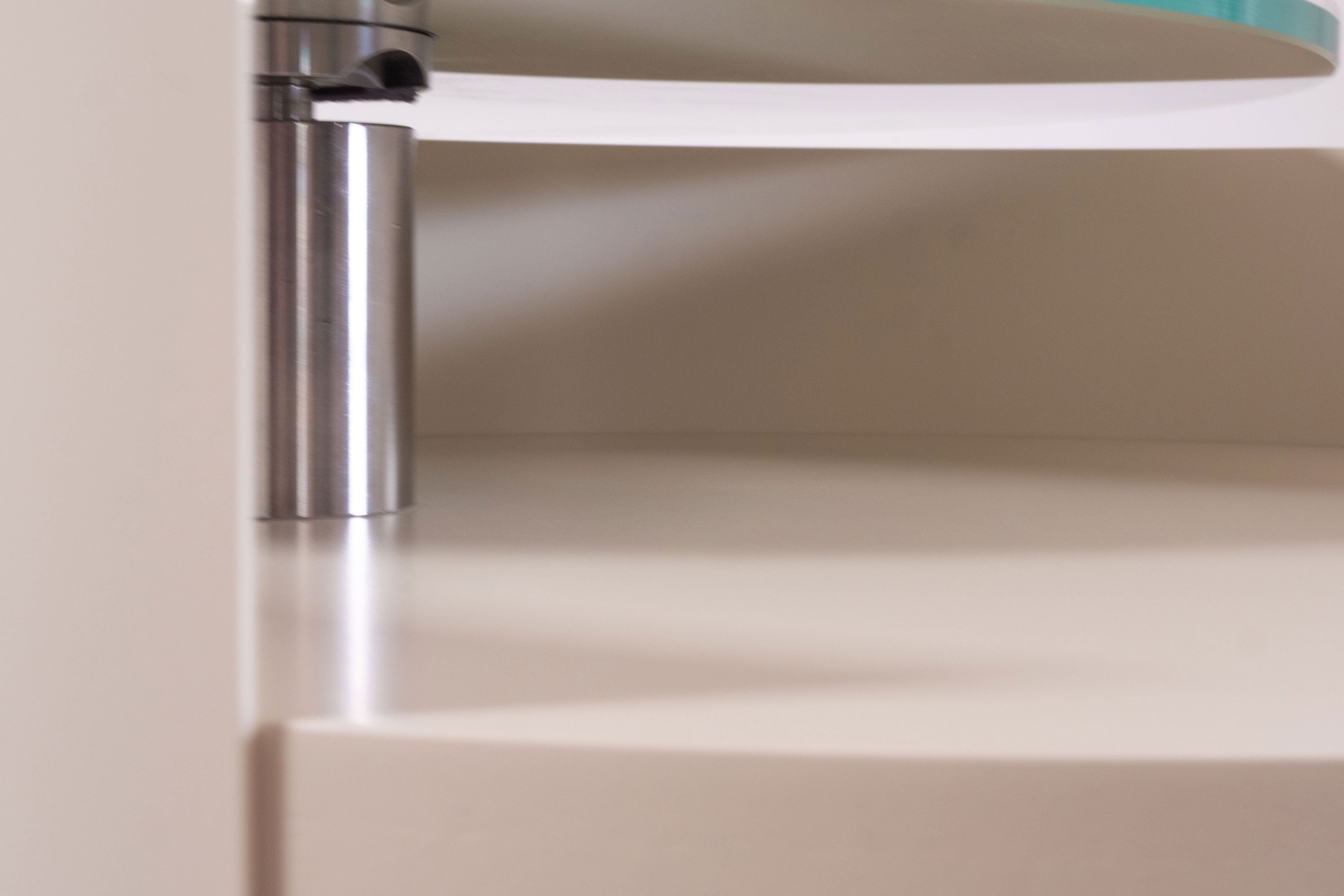 - Trägerplatte: MDF-Platte, lackiert, Perlweiß (RAL1013)
