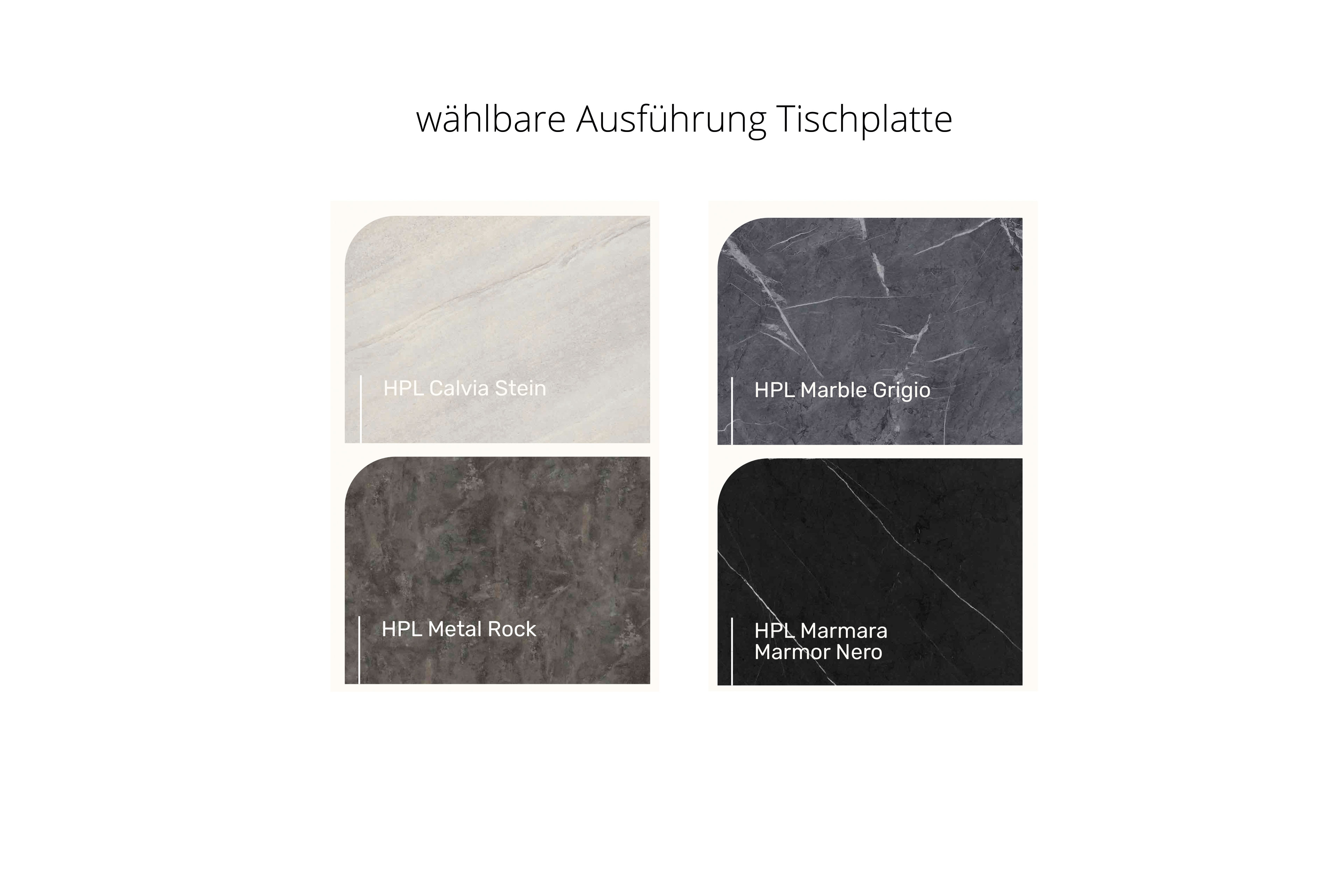- Tischplatte: MDF mit HPL Auflage, Marmara Marmor Nero