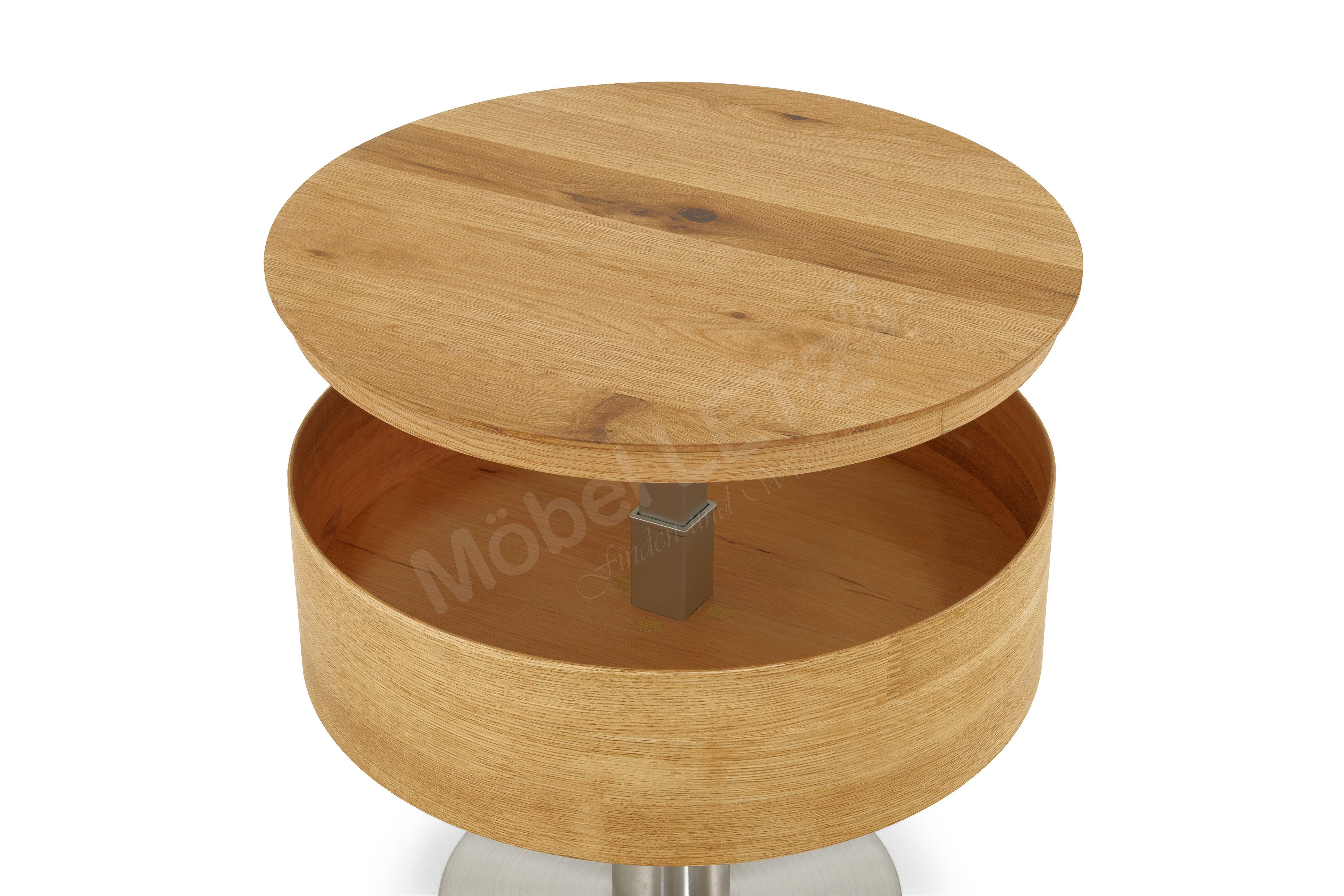 Ein Couchtisch ist nicht nur eine perfekte Ergänzung für Ihre gemütliche Sofalandschaft, sondern auch ein attraktiver Beisteller für Ihre Leseecke. A Better Place hat mit der Kollektion Tanger ein atemberaubendes Möbelstück geschaffen, welche alle Blicke durch seine Exklusivität auf sich zieht. Die runde, mit Asteichenfurnier belegte Tischplatte zeichnet sich durch ein modernes und stilvolles Erscheinungsbild aus. Außerdem zeigt sich der A Better Place Couchtisch mit einem Gestell in Edelstahl-Optik. Ein Highlight der Serie ist die höhenverstellbare Tischplatte, welche Sie circa 18 Zentimeter anheben können. Unterhalb der Tischplatte haben Sie die Möglichkeit, vielerlei Ihrer Gegenstände wie beispielsweise Ihre Lieblingsbücher oder Ihre Funkfernbedienungen abzulegen. Dekorative Gegenstände arrangieren Sie ideal und für jedermann sichtbar auf dem Sofatisch. Bestellen Sie noch heute den A Better Place Tisch und werden Sie Ihr eigener Innendesigner.