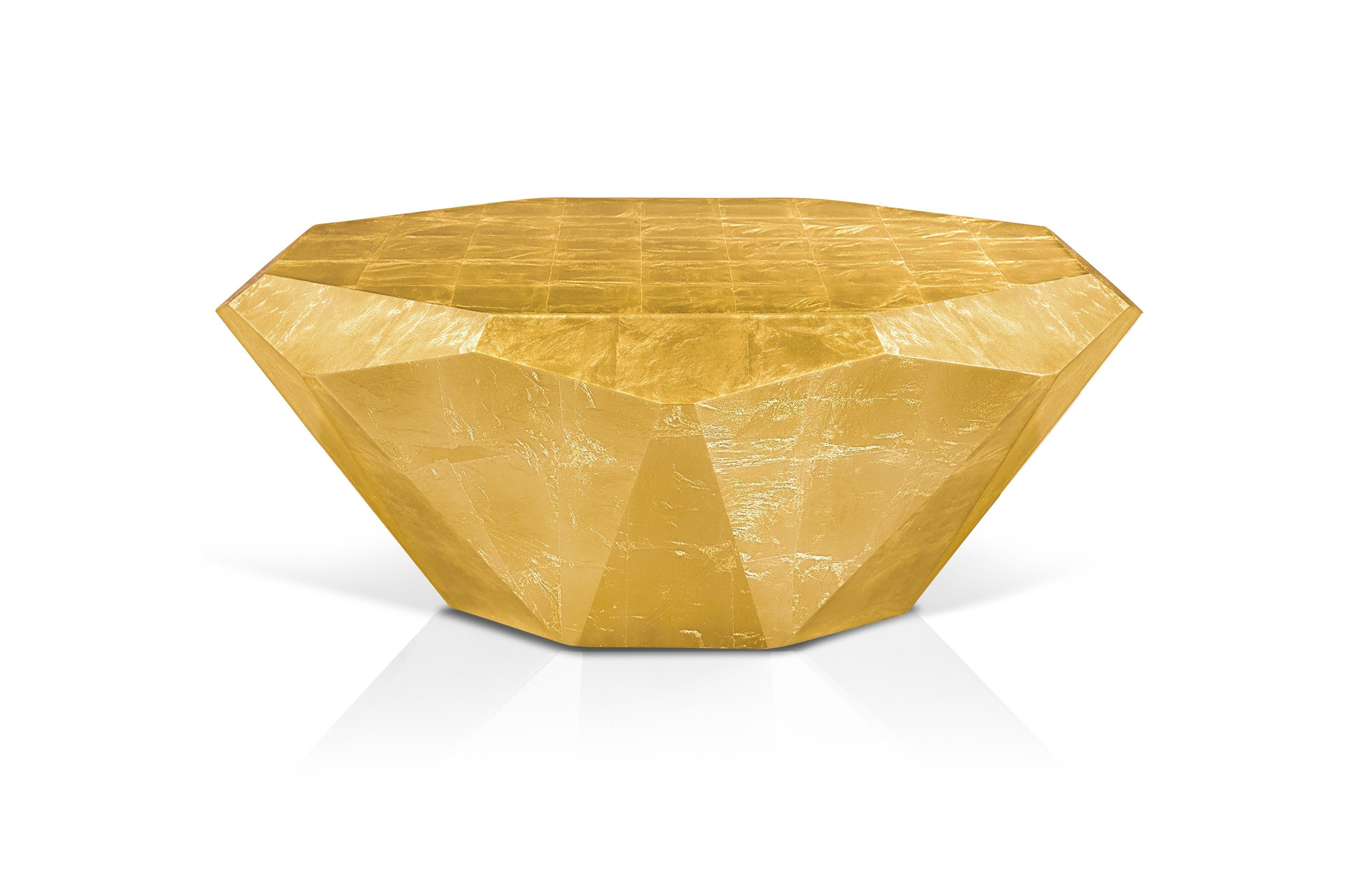 Couchtisch von Bretz - Modell Stealth R145G Blattmessing gold Hochglanz Ästhetik im ausgefallenen Stil