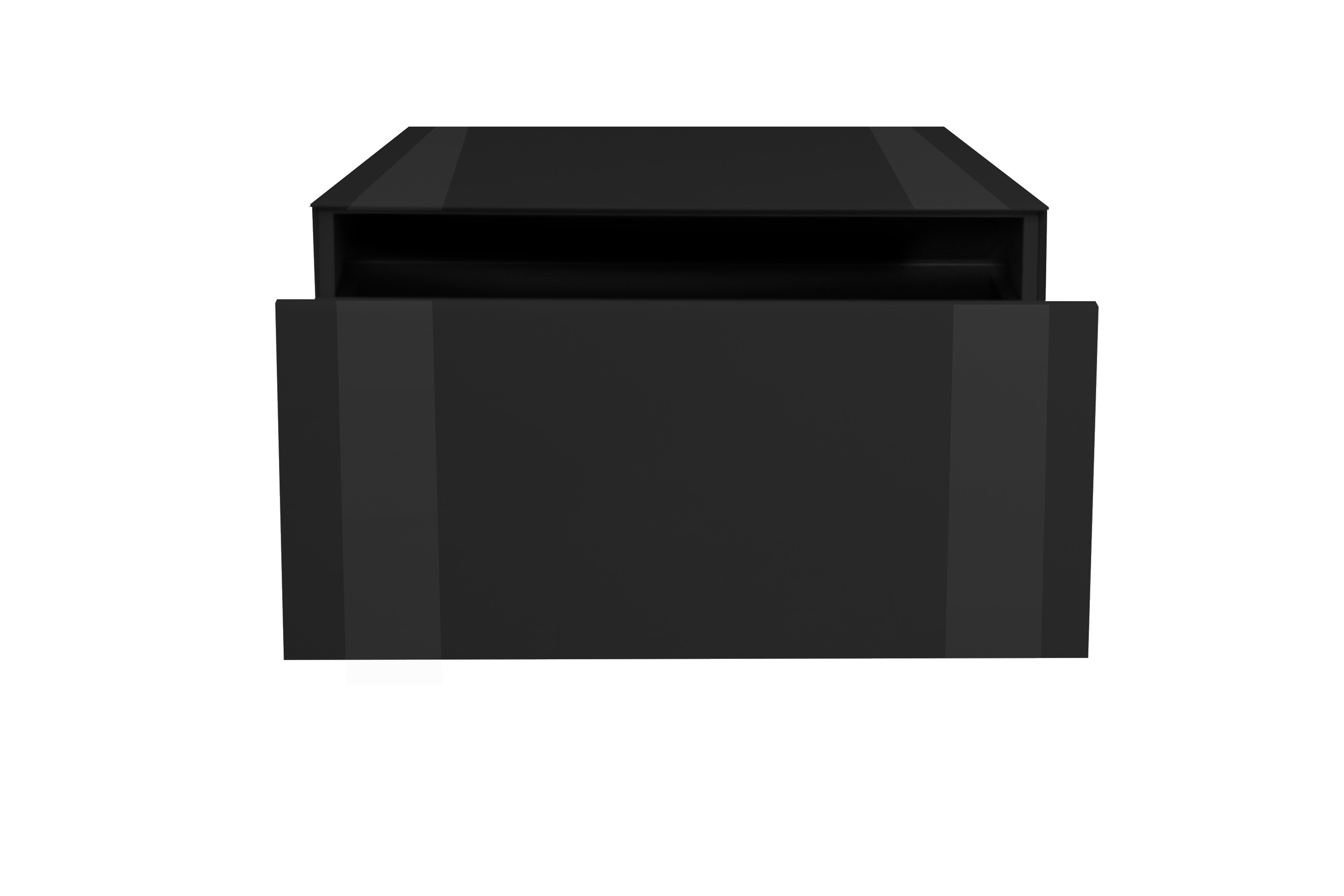 - Korpus/ Schubkastenfront/ Oberplatte: Glas, glänzend, vulkanschwarz