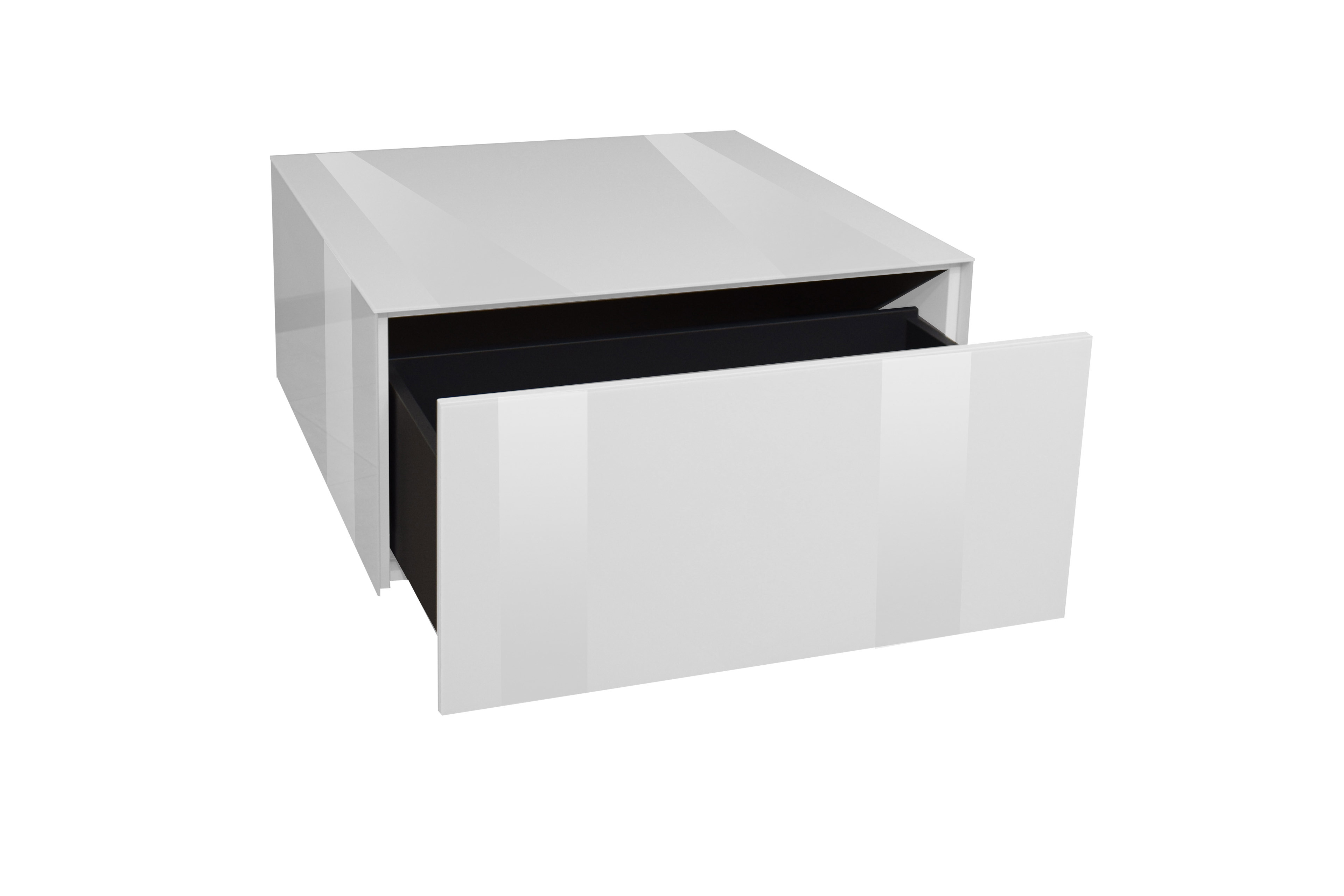 - Korpus/ Schubkastenfront/ Oberplatte: Glas, glänzend, ice white