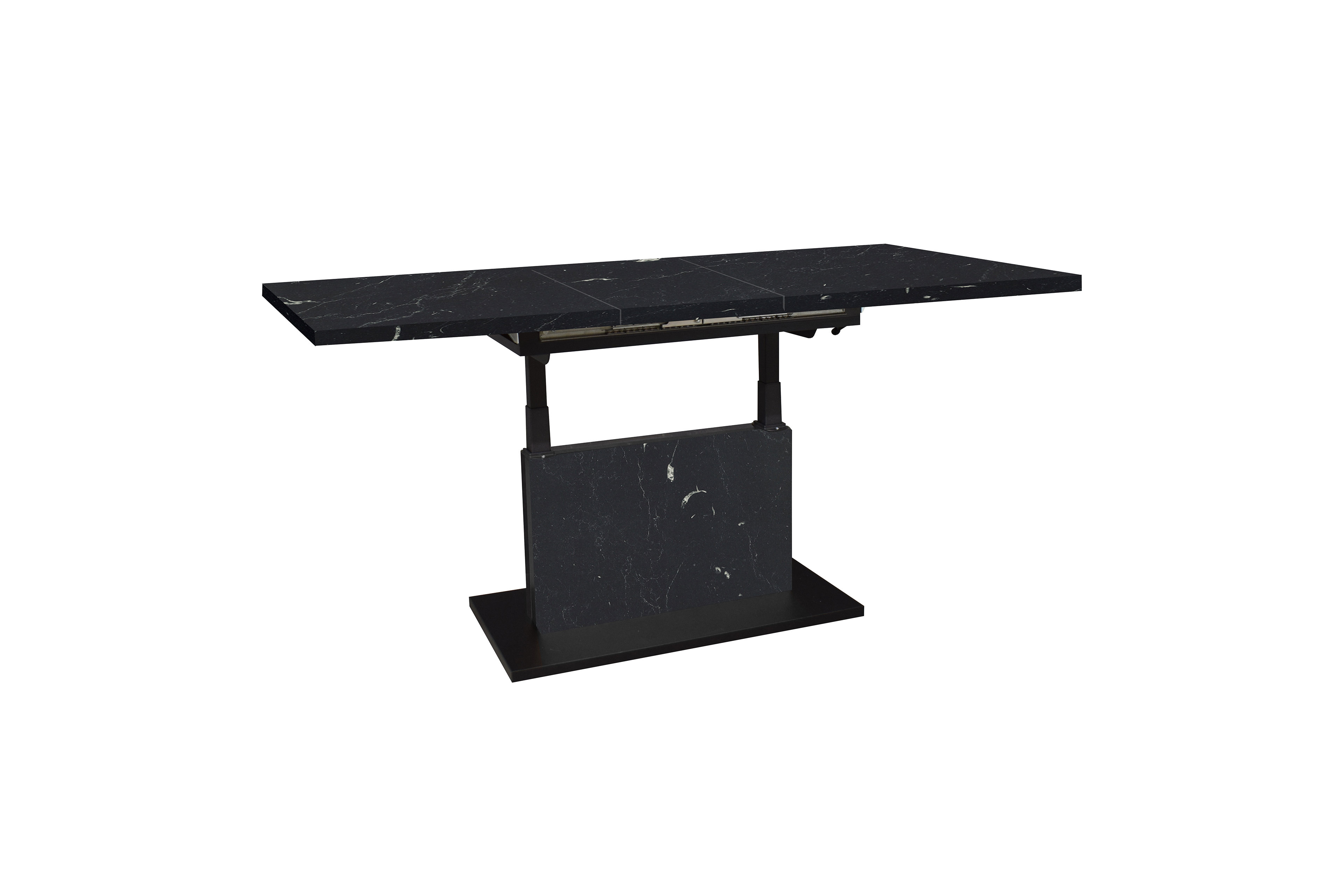 - Tischplatte/ Säule: schwarz, Keramikoptik, E1-Spanplatte mit Melaminbeschichtung und ABS-Kante, kratzfest