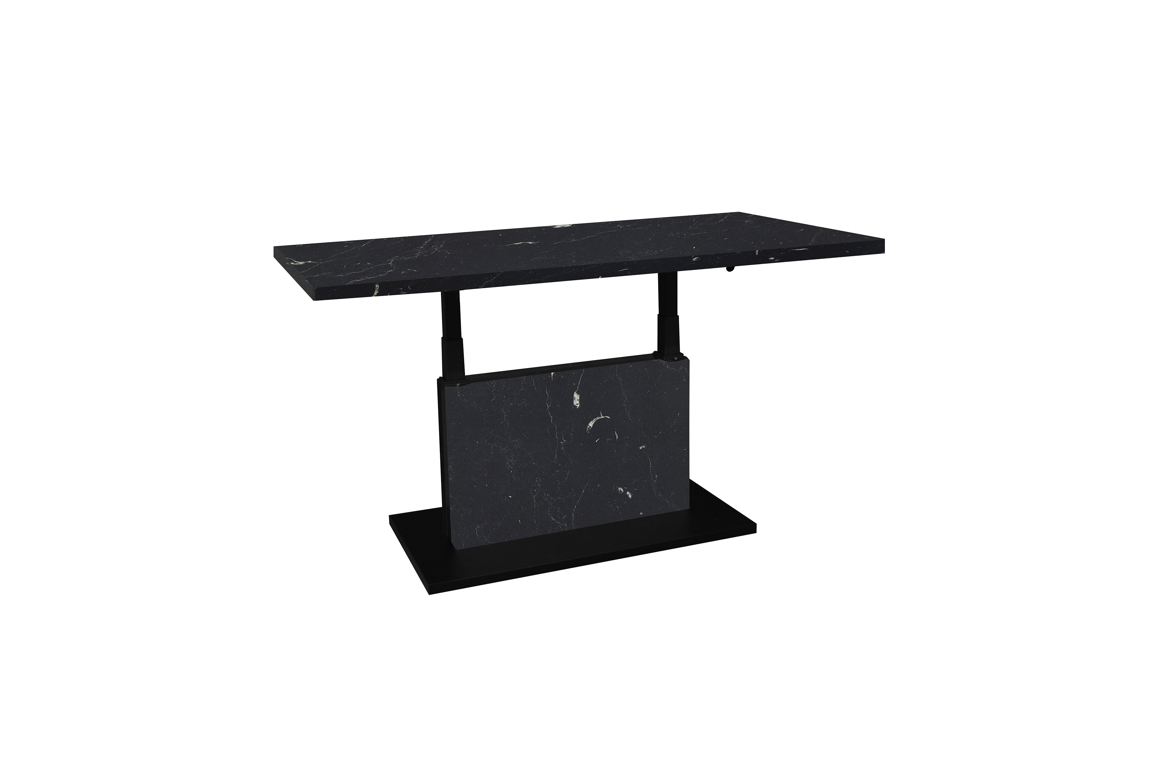 - Tischplatte/ Säule: schwarz, Keramikoptik, E1-Spanplatte mit Melaminbeschichtung und ABS-Kante, kratzfest