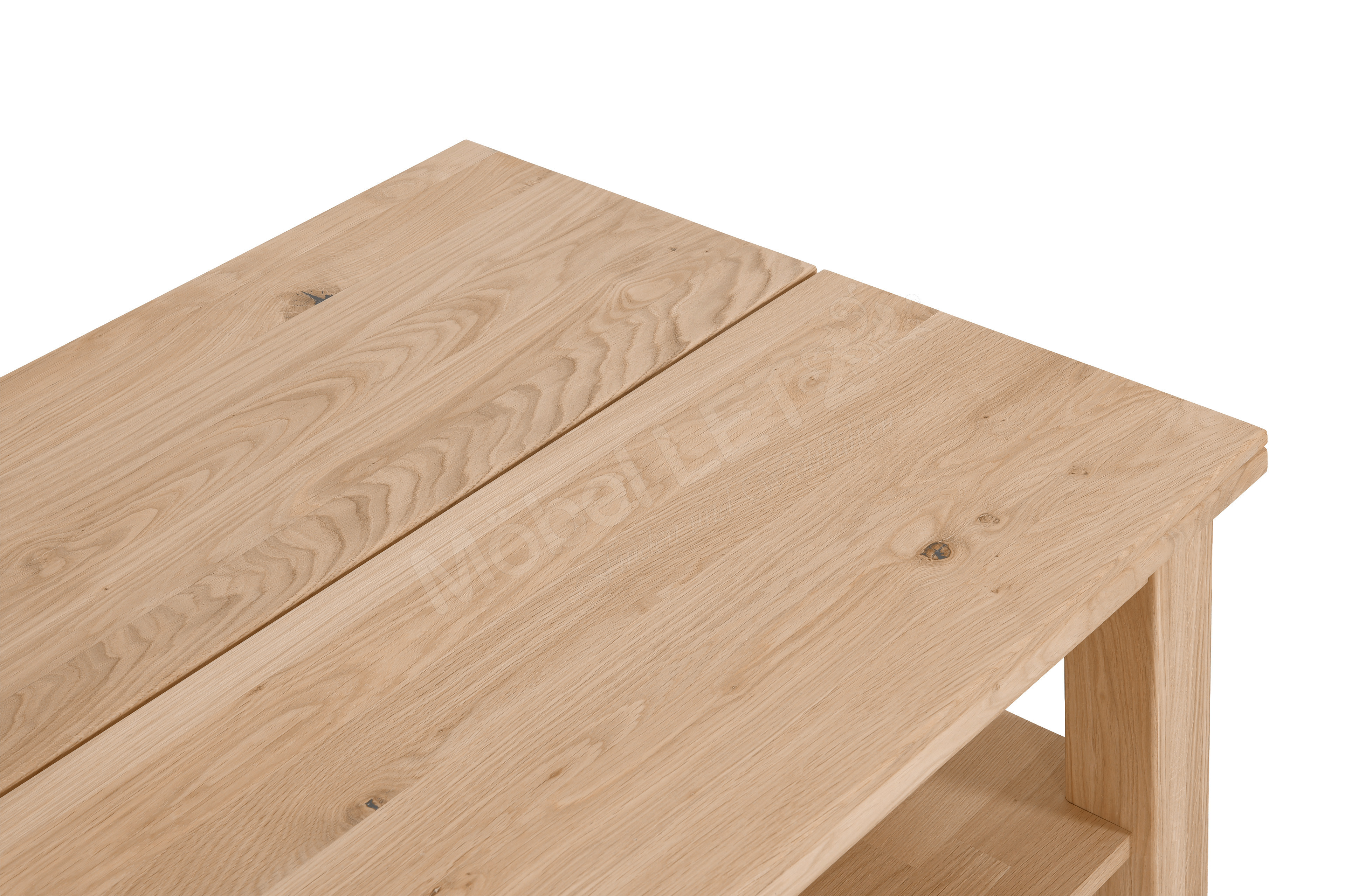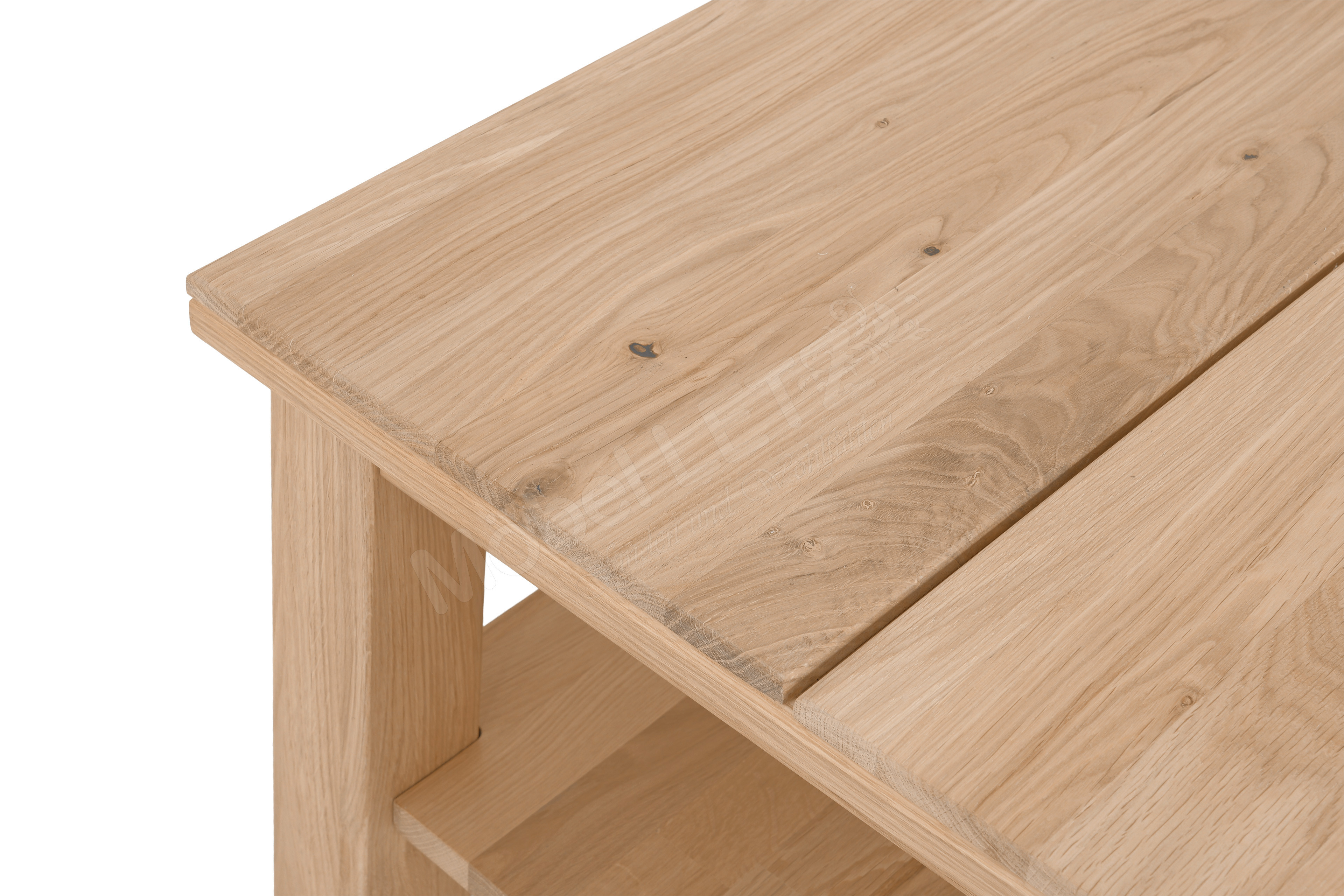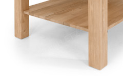 - Tischplatte/ Ablageboden/ Gestell: Wildeiche, massiv