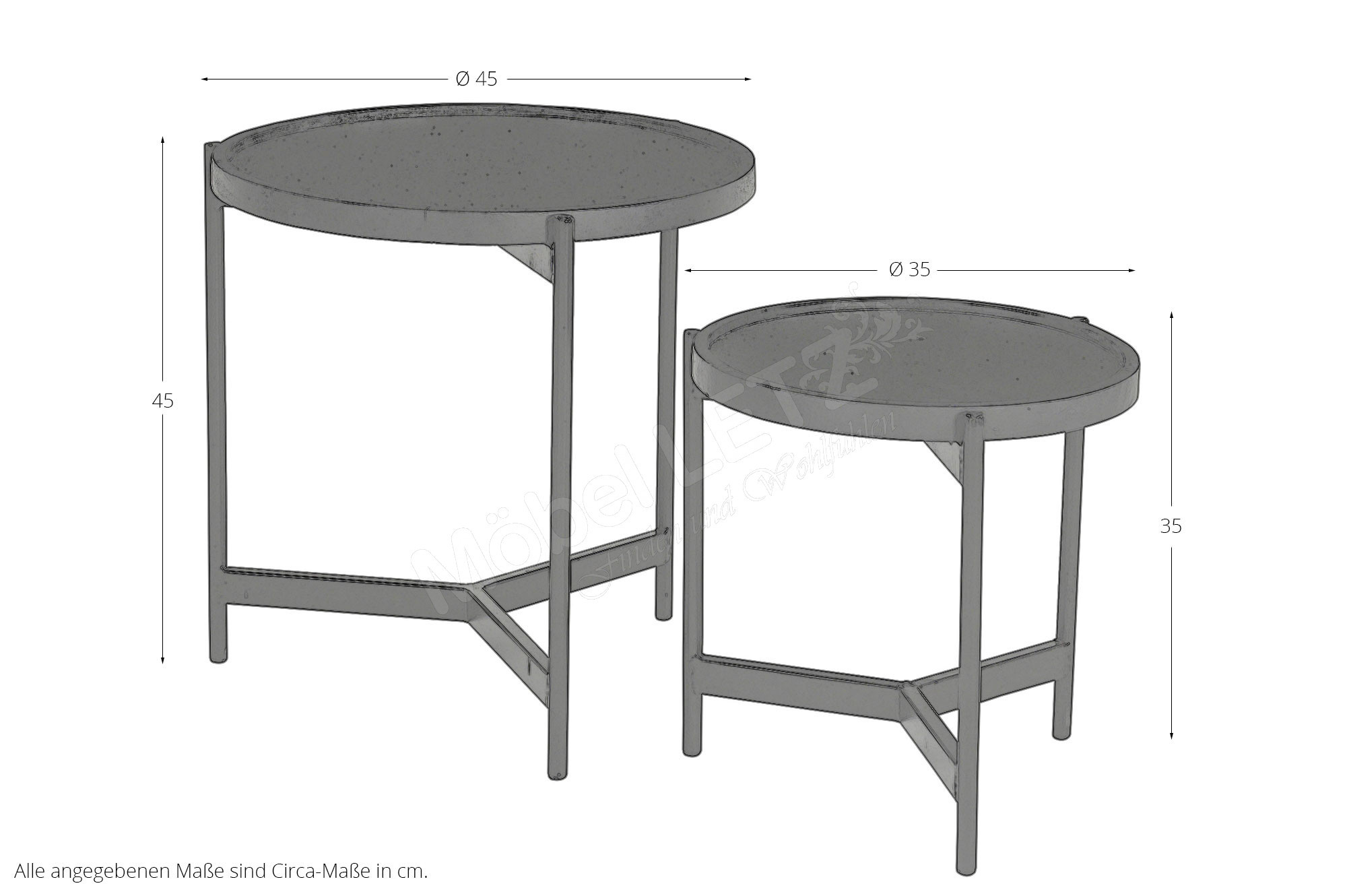 - 1 x Beistelltisch klein, Durchmesser ca. 35 cm, Höhe ca. 35 cm
