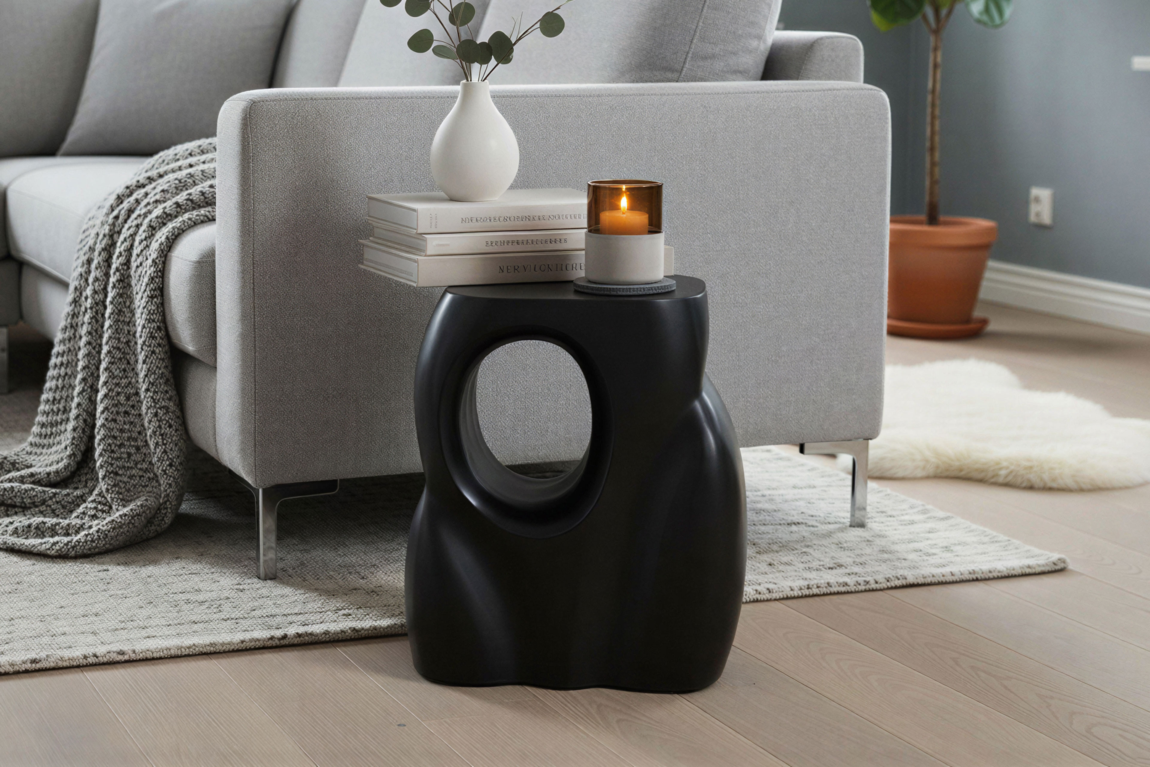 Bringen Sie mit dem Beistelltisch Black Smooth von SIT Möbel stilvolle Akzente in Ihr Zuhause. Dieses außergewöhnliche Möbelstück vereint Funktionalität und künstlerisches Design auf eindrucksvolle Weise. Gefertigt aus massivem Mangoholz und in tiefem Schwarz lackiert, zieht es mit seiner organischen, geschwungenen Form sofort alle Blicke auf sich. Sanfte Linien, die fast wie handmodelliert wirken, verleihen dem Tisch eine elegante Leichtigkeit – ganz ohne harte Kanten oder starre Geometrie. Mit circa 36 Zentimetern Breite, circa 41 Zentimetern Höhe und circa 26 Zentimetern Tiefe ist der Tisch kompakt, aber vielseitig einsetzbar. Ob neben dem Sofa als praktische Ablage, im Flur für Schlüssel und Accessoires oder als dekorativer Blickfang in Lounge- und Wohnbereichen – er passt sich deinem Raum flexibel an. Die mittige Öffnung sorgt für Dynamik und lässt das Licht auf faszinierende Weise spielen, wodurch der Tisch noch lebendiger wirkt. Die sanft glänzende Oberfläche hebt die weichen Konturen hervor und unterstreicht die hochwertige Qualität des Holzes. Ein Beistelltisch, der durch seine außergewöhnliche Form und moderne Ausstrahlung jedem Raum einen unverwechselbaren Charakter verleiht. Design, das begeistert – funktional und einzigartig.