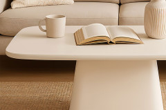 Couchtisch von SIT Möbel - Modell Holvik Kalkputz, weiß Holvik - moderne Möbel mit geometrischen Formen