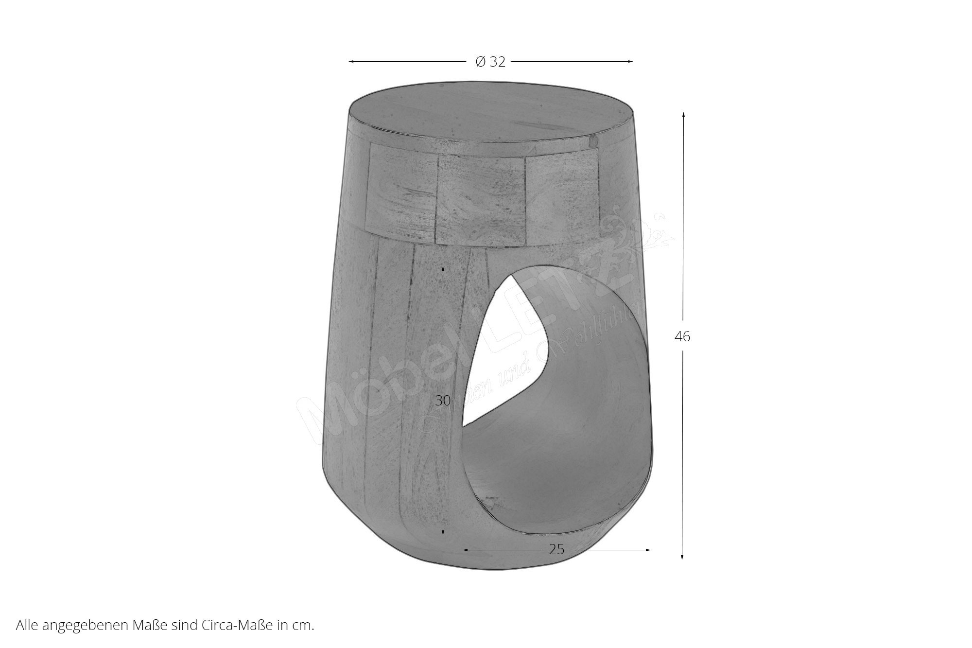 - 1 x 14771-30 - Couchtisch, Durchmesser ca.: 32 cm, Höhe ca.: 46 cm