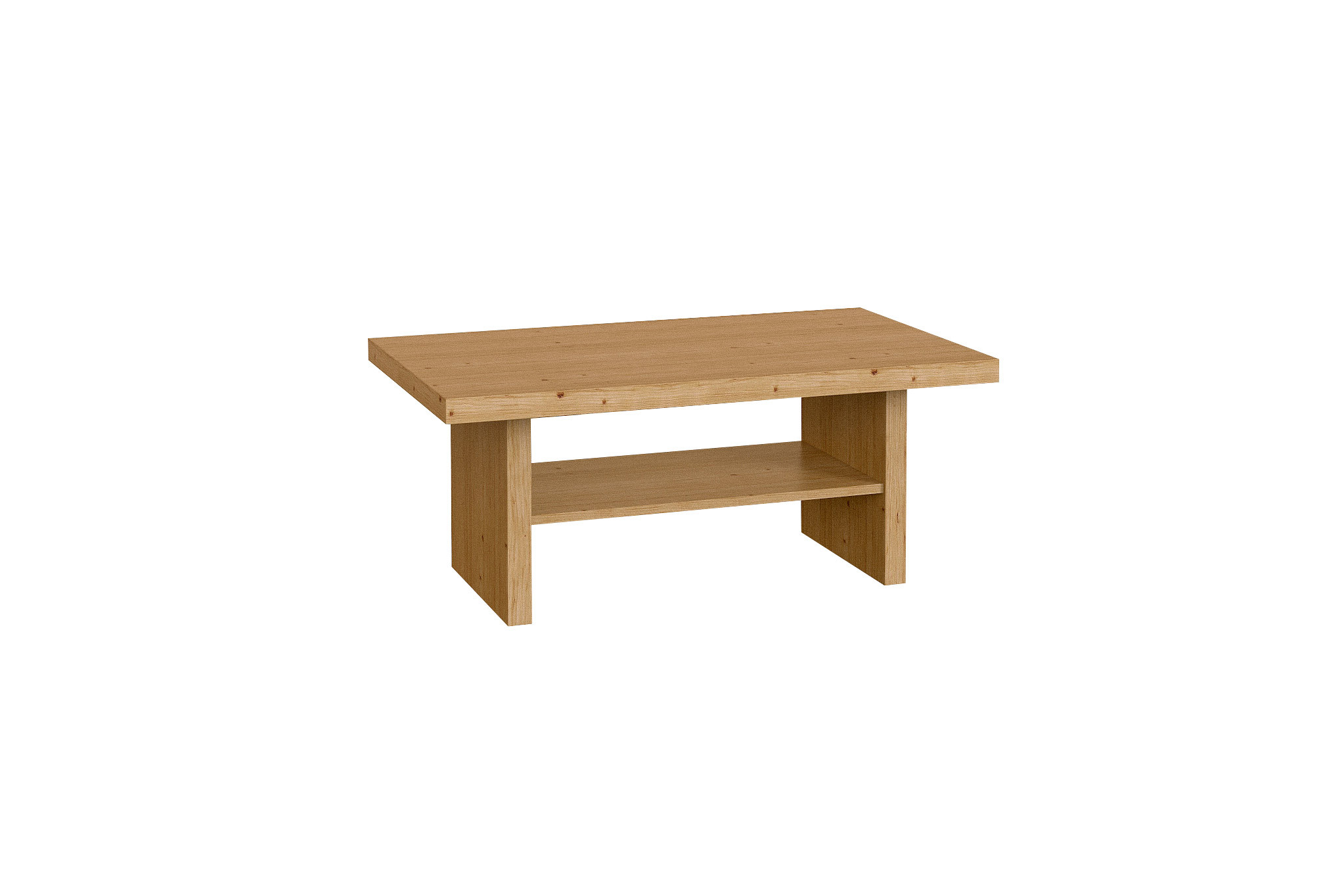 - Tischplatte/ Tischgestell/ Ablageboden: Wildeiche, furniert, Spanplatte