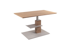 Mit dem Couchtisch 5644 von Vierhaus lassen Sie ein neues und modernes Design in Ihr Wohnzimmer einziehen. Die Tischplatte aus furnierter Wildeiche schenkt dem Tisch eine warme, natürliche Ausstrahlung und bringt gleichzeitig eine robuste und langlebige Oberfläche mit. Unter der Hauptplatte befindet sich eine Ablageplatte aus Edelstahl, die in einem eleganten Seidengrau lackiert ist. Sie bietet zusätzlichen Stauraum für Ihr Lieblingsbuch oder die Fernbedienung und setzt zugleich einen stilvollen Akzent. Die Säule in Wildeiche ist mit fein gearbeiteten Nuten versehen, die dem Tisch Charakter und handwerkliche Tiefe verleihen. Ein besonderes Highlight ist die integrierte Höhenverstellung, die den Tisch im Handumdrehen von einer niedrigen Loungehöhe auf eine komfortablere Arbeits- oder Esshöhe anpasst. So wird der Couchtisch zum vielseitigen Begleiter im Wohnbereich. Abgerundet wird das Design durch die Bodenplatte aus MDF, ebenfalls in Seidengrau lackiert, die für hohe Stabilität sorgt. Unter der Platte befinden sich Rollen, die ein müheloses Verschieben des Tisches ermöglichen. Nach Hause kommen und wohlfühlen mit dem Couchtisch 5644 aus dem Hause Vierhaus.