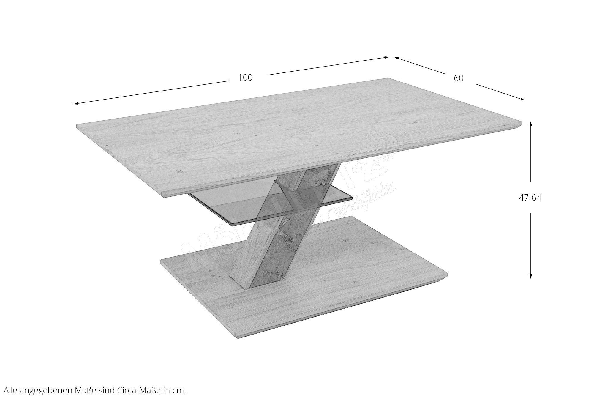 - Couchtisch mit Ilse-Hydro-Lift-Mechanik (stufenlos höhenverstellbar) und Rollen