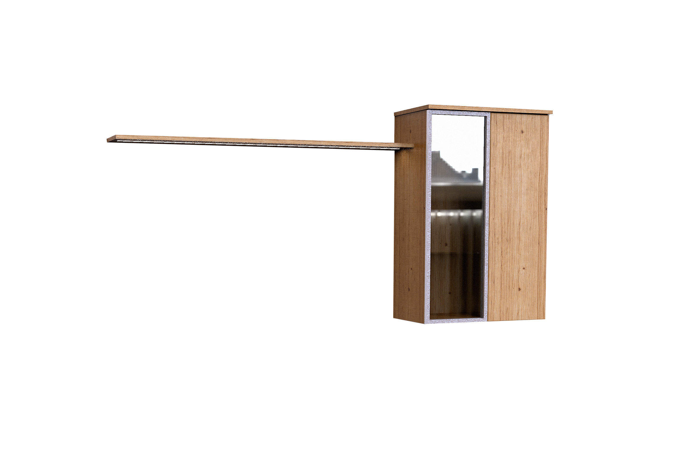 - Hängeschrank mit 1 Aluglastür, 1 Holztür, 2 Glasböden und 1 Ablageboden