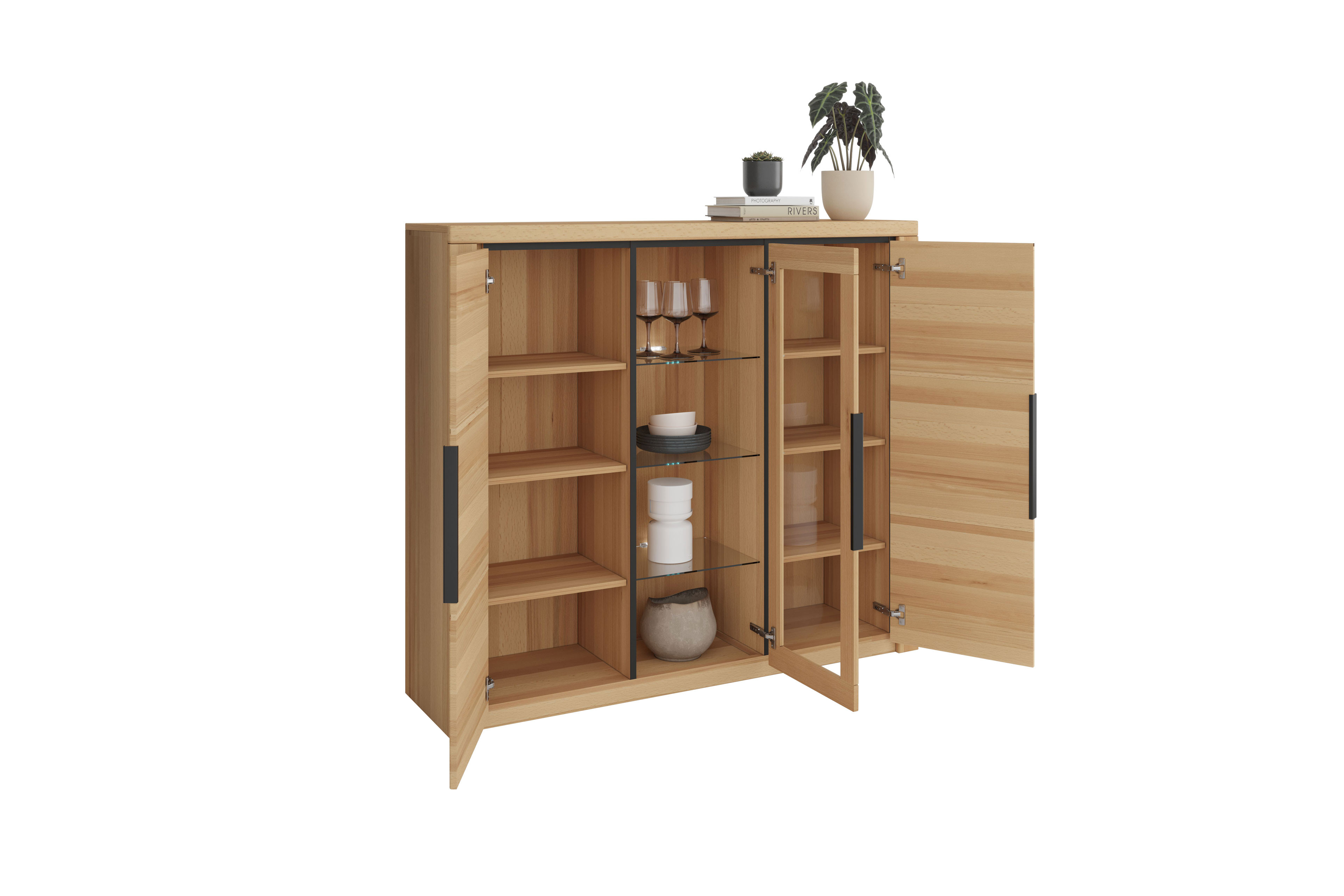 - Highboard mit 1 Glas-/ Holztür, 2 Holztüren, 3 Glaseinlegeböden und 6 Holzeinlegeböden