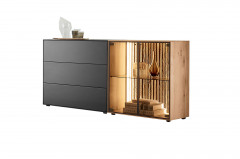 Sideboard von Hartmann - Modell Selino V24 Kerneiche natur/ Birke anthrazit Selino - Naturschauspiel aus Massivholz und Lack