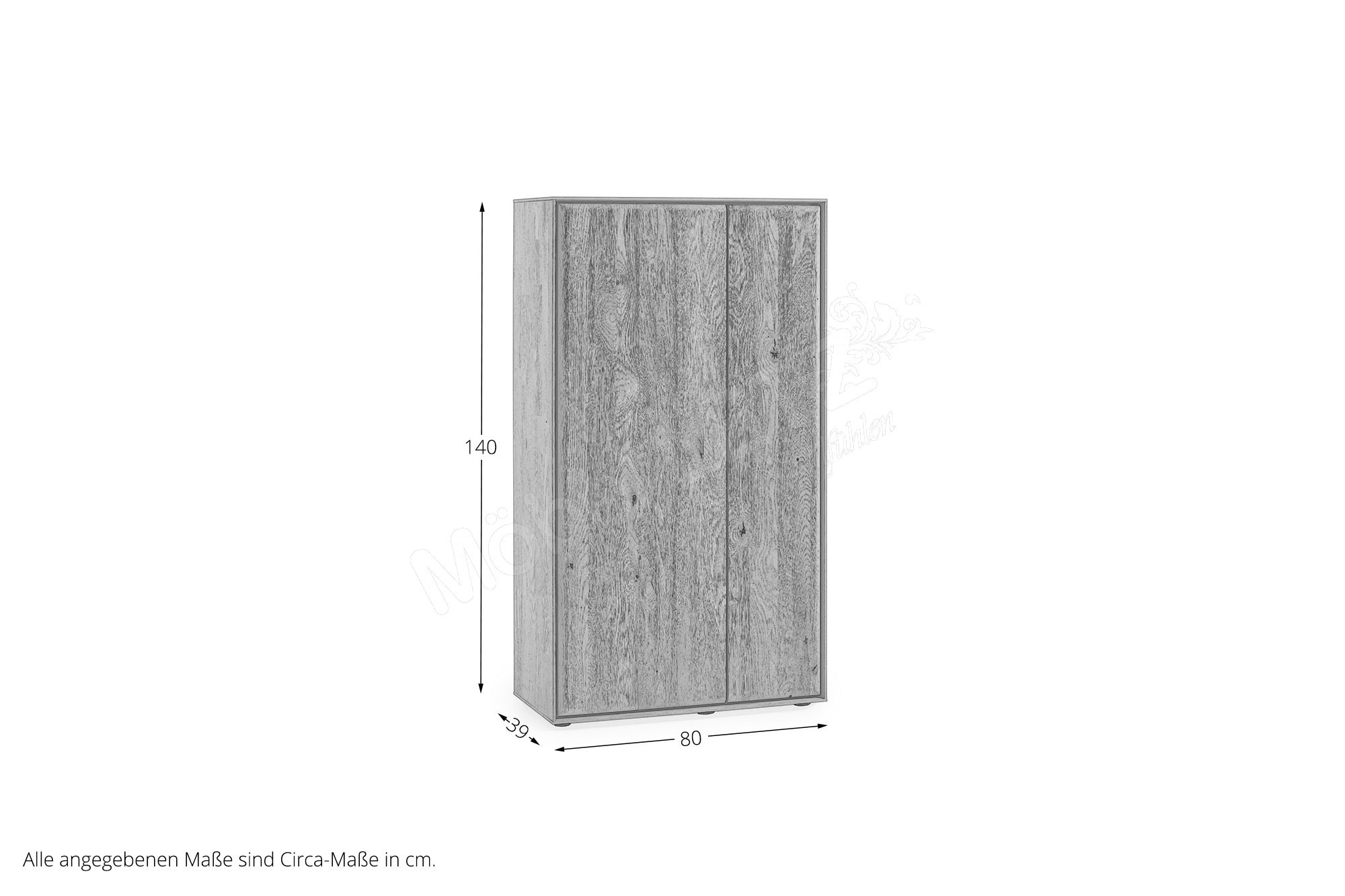 rechts - mit 2 Holztüren, 2 Holzböden und 4 Holzeinlegeböden, BHT ca.: 80/140/39 cm (Art-Nr. 8640-7084)