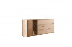 - Sideboard mit 1 Glas-/ Holztür, 1 Klappe, 2 Schubkästen, 1 Glasboden, 1 Holzboden und 1 Holzeinlegeböden